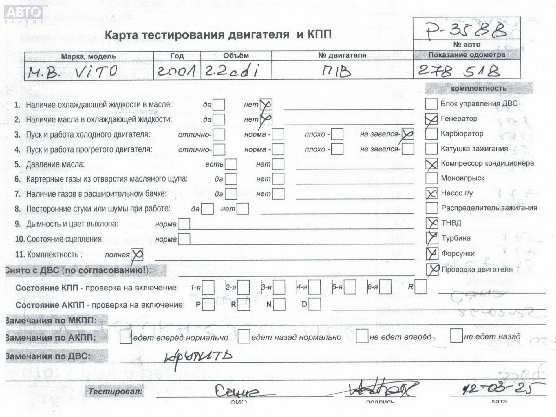 | Марка / Модель / Год: | Mercedes Vito-1 W638 (1996-2003) 2003 |