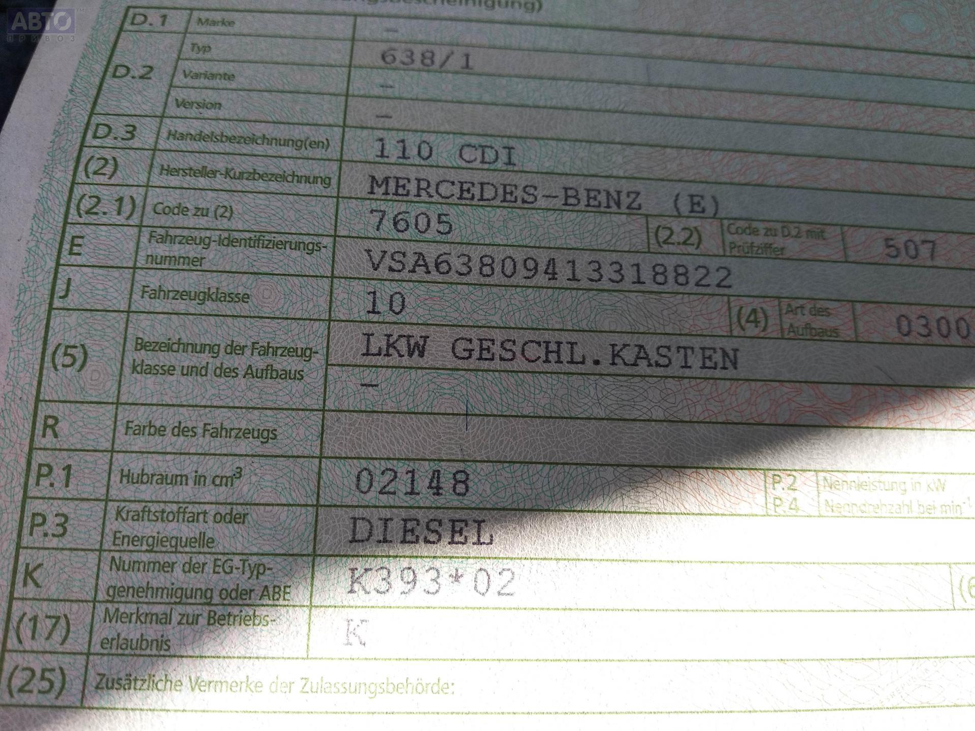 | Марка / Модель / Год: | Mercedes Vito-1 W638 (1996-2003) 2000 |