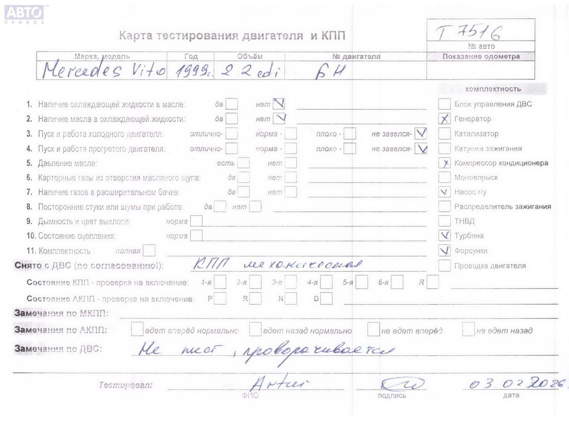 | Марка / Модель / Год: | Mercedes Vito-1 W638 (1996-2003) 1999 |