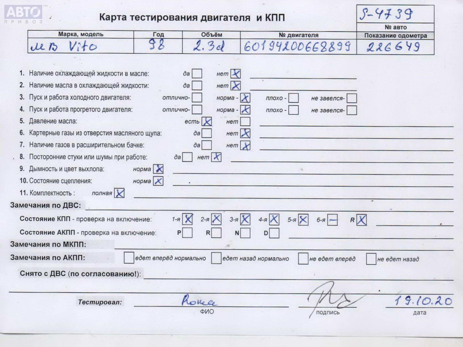 | Марка / Модель / Год: | Mercedes Vito-1 W638 (1996-2003) 1998 |