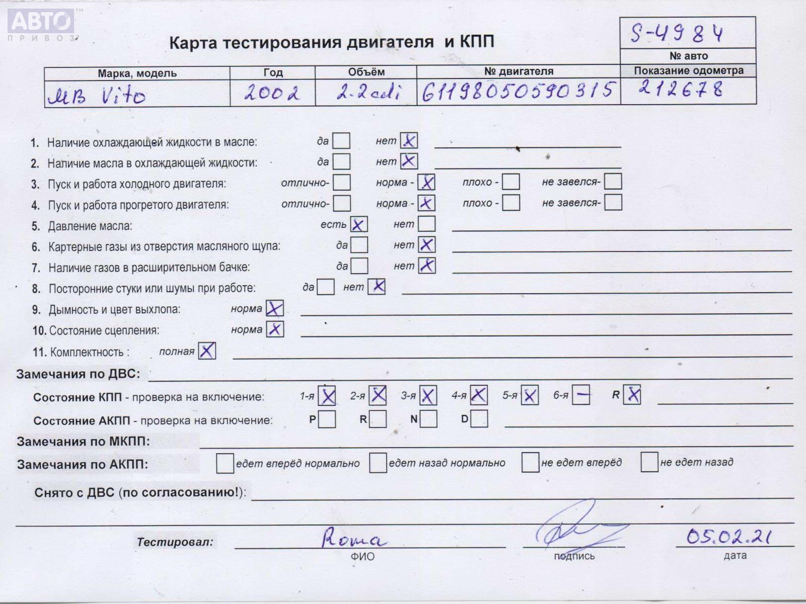 | Марка / Модель / Год: | Mercedes Vito-1 W638 (1996-2003) 2002 |