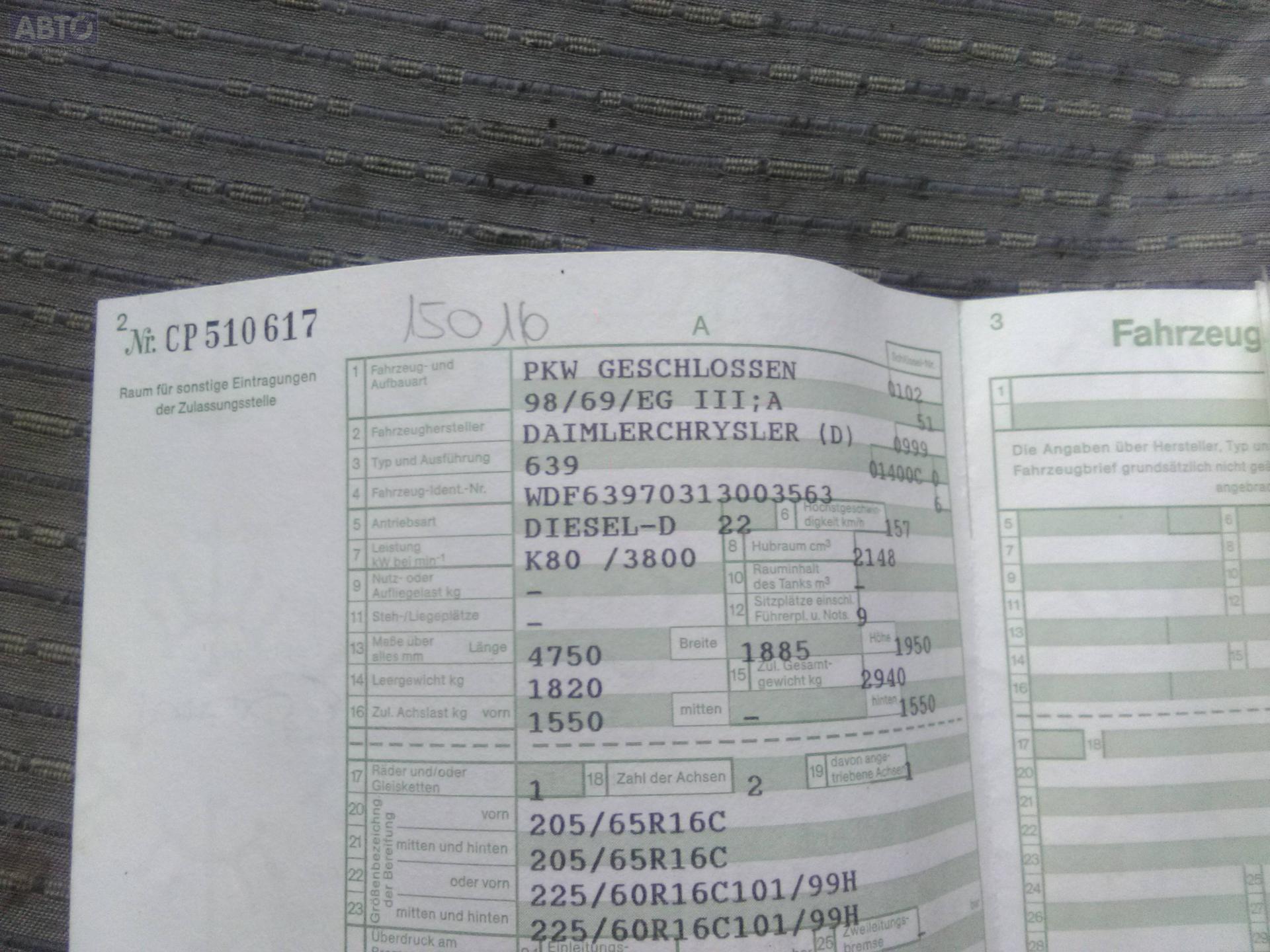 | Автомобиль / VIN: | L8852 WDF63970313003563 |