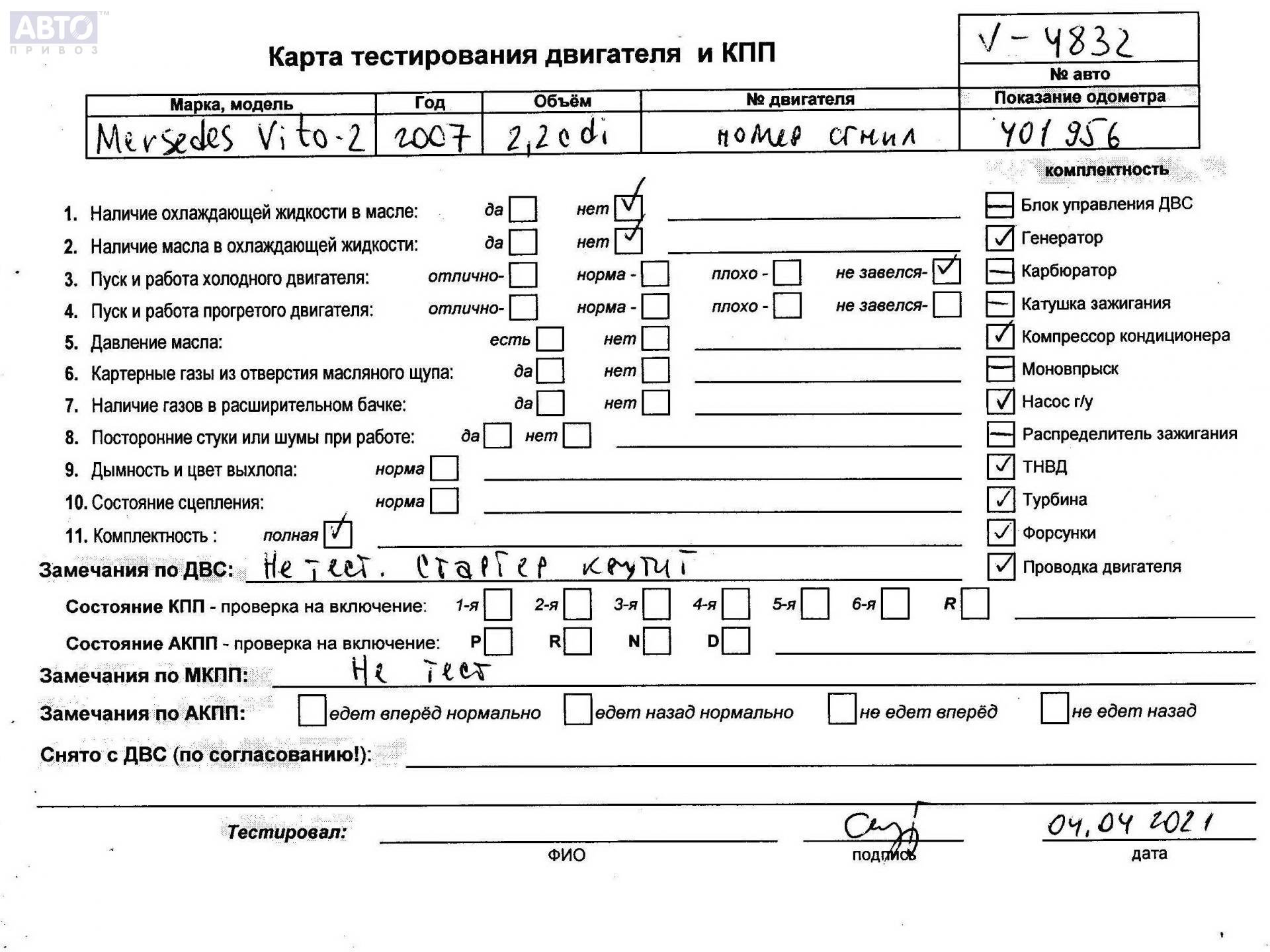 | Марка / Модель / Год: | Mercedes Vito-2 / Viano W639 (2003-2014) 2007 |