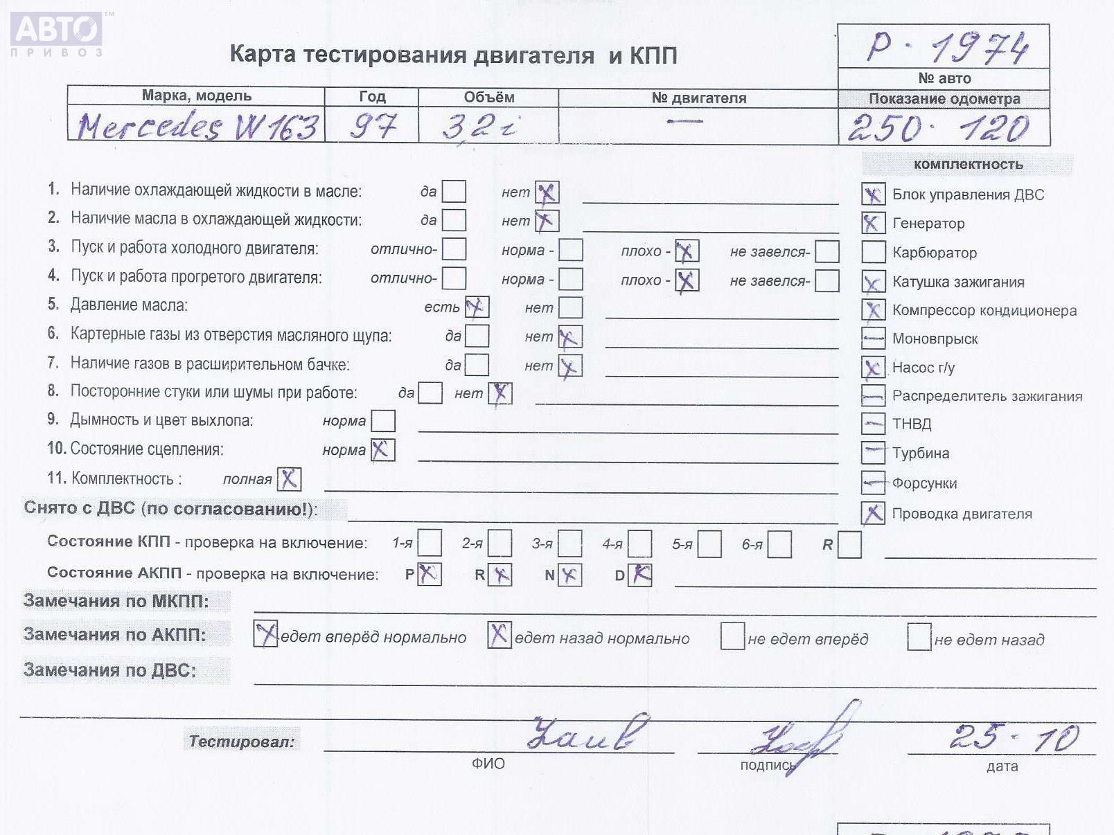 | Автомобиль / VIN: | P1974 WDC1631541X706471 |