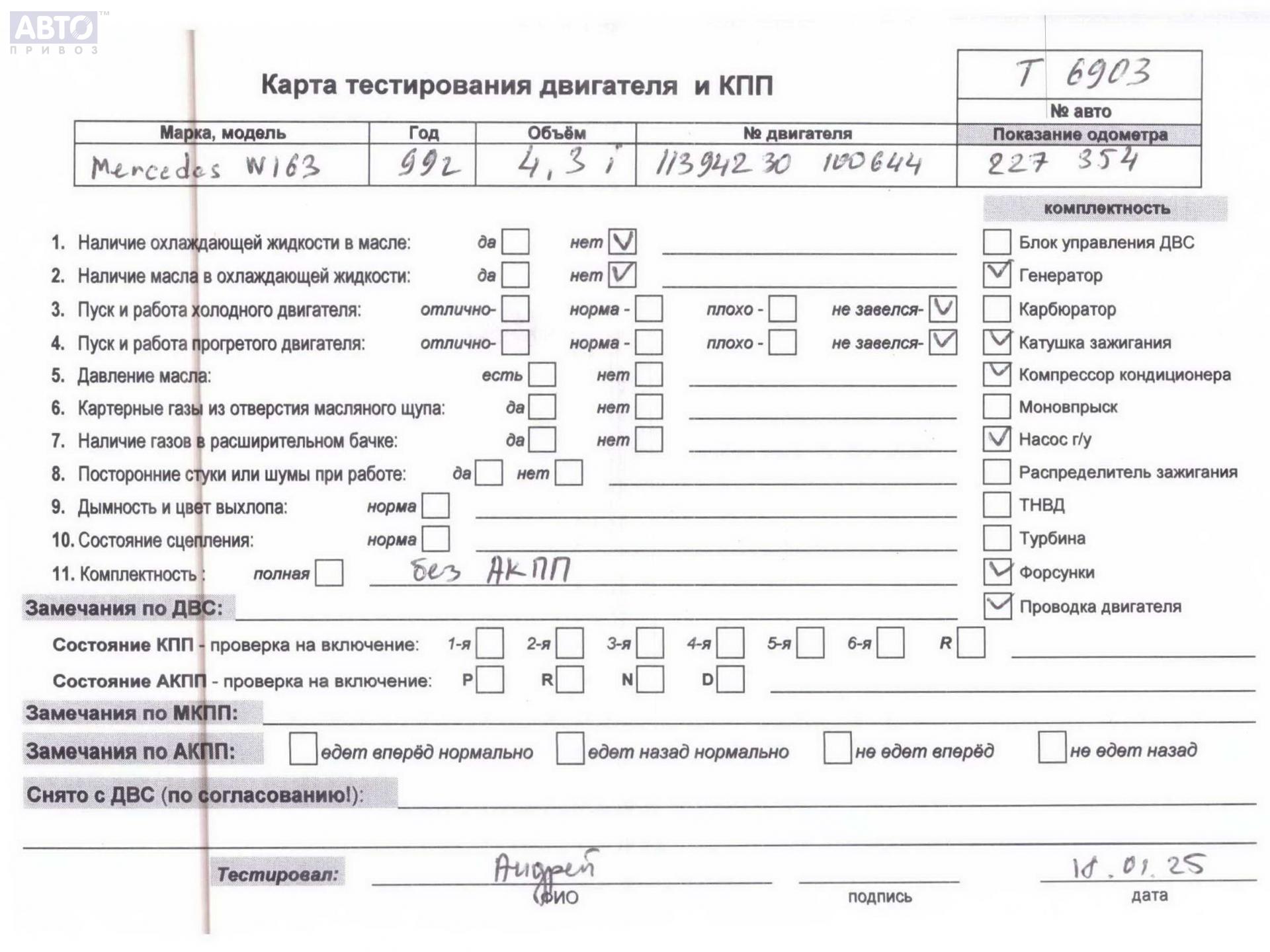 | Марка / Модель / Год: | Mercedes M-Class ML W163 (1998-2004) 1999 |
