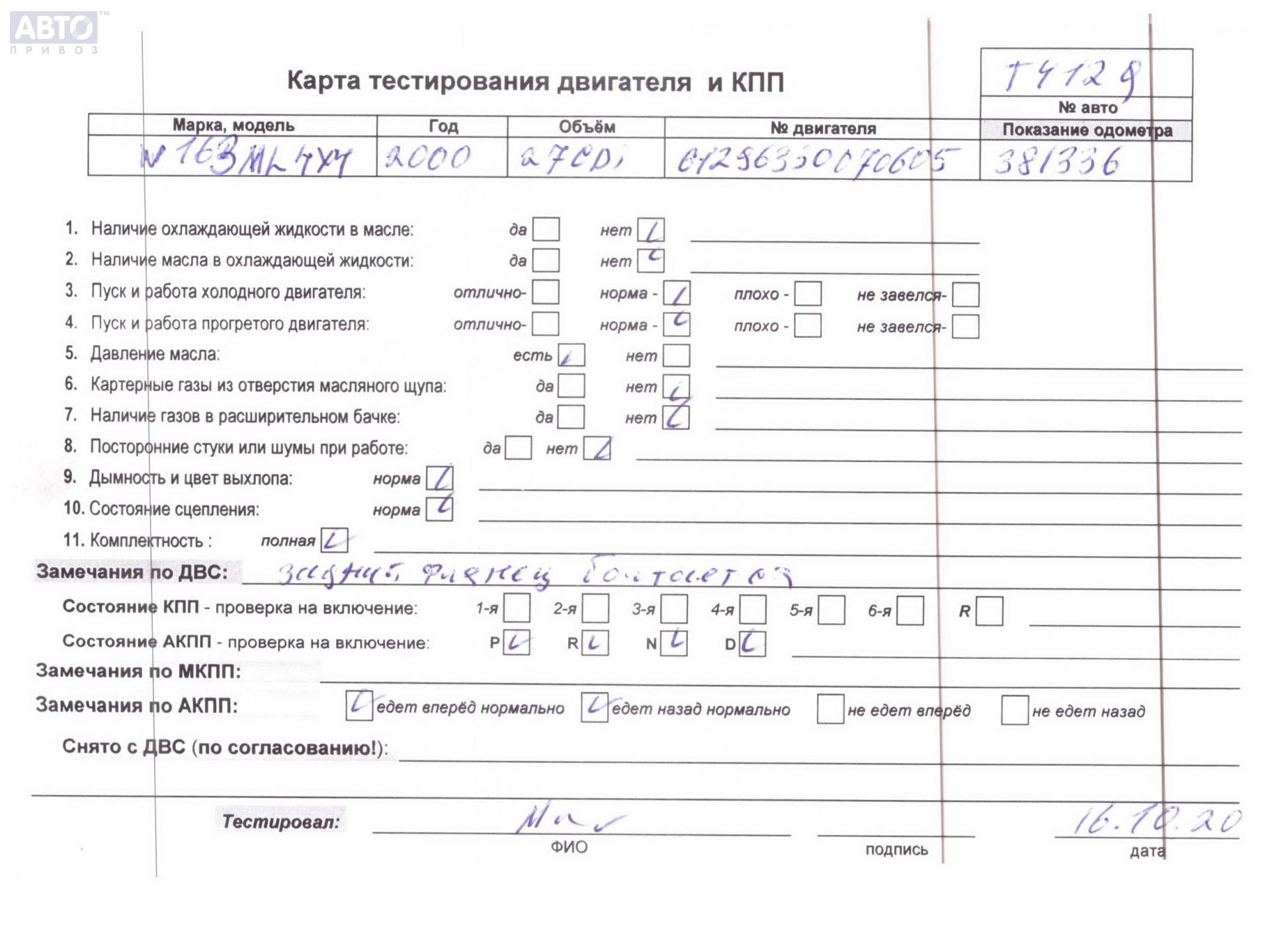 | Марка / Модель / Год: | Mercedes M-Class ML W163 (1998-2004) 2000 |