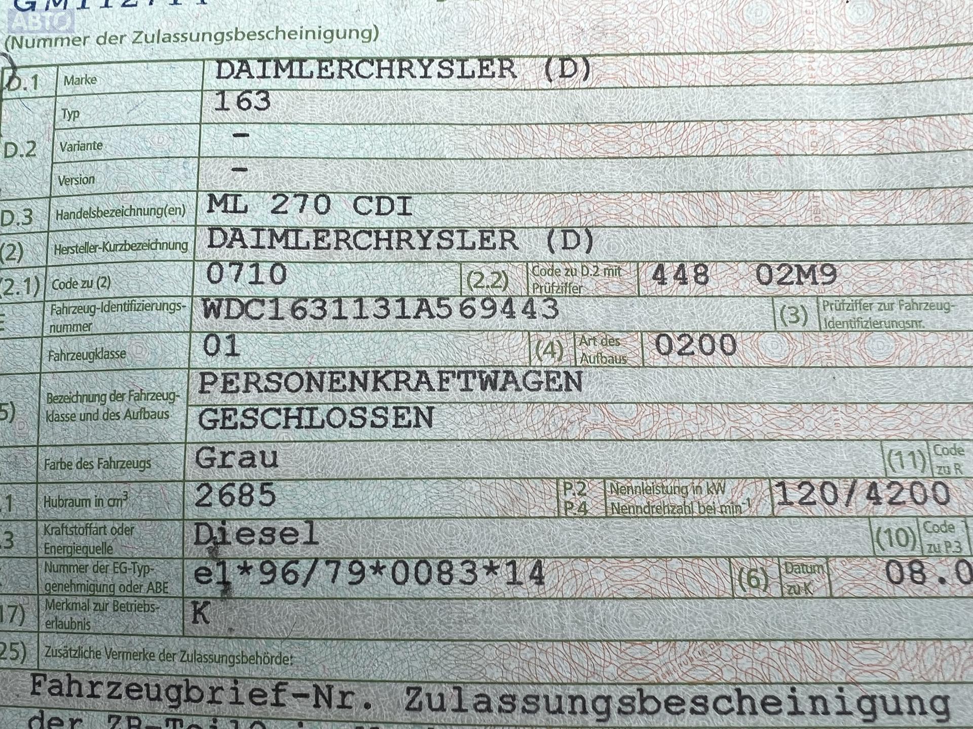| Марка / Модель / Год: | Mercedes M-Class ML W163 (1998-2004) 2004 |