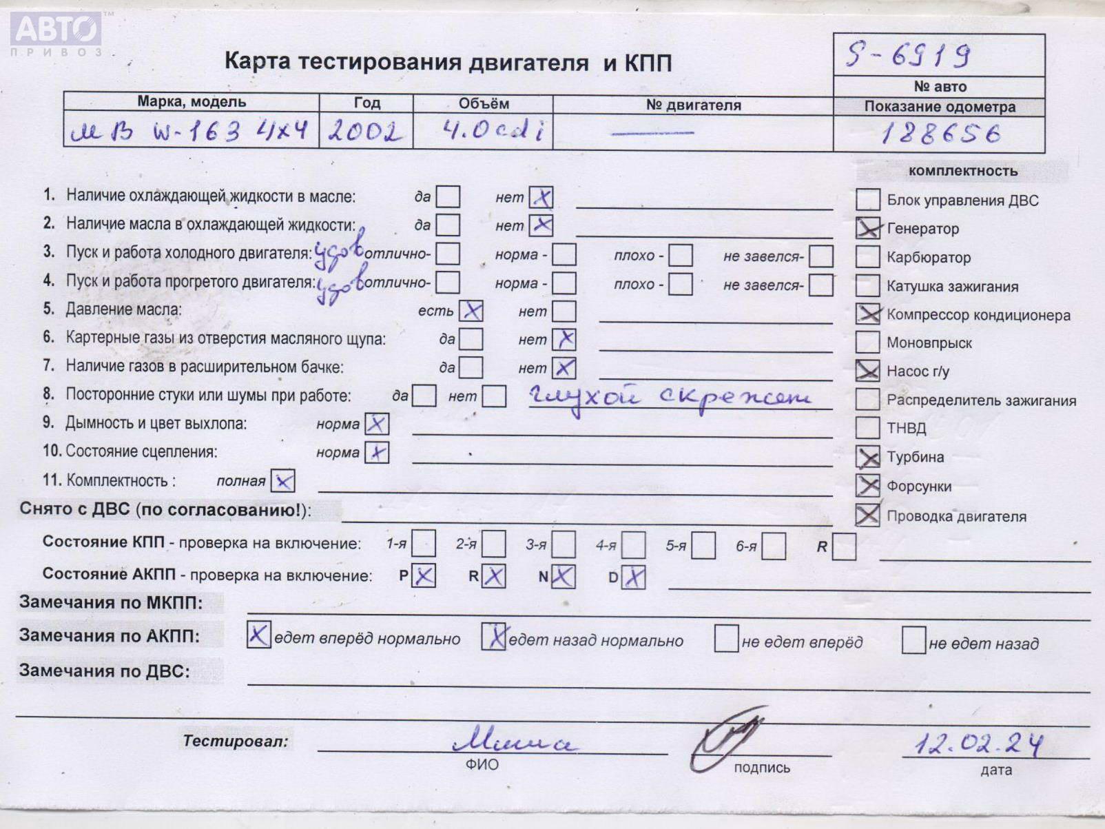 | Марка / Модель / Год: | Mercedes M-Class ML W163 (1998-2004) 2002 |