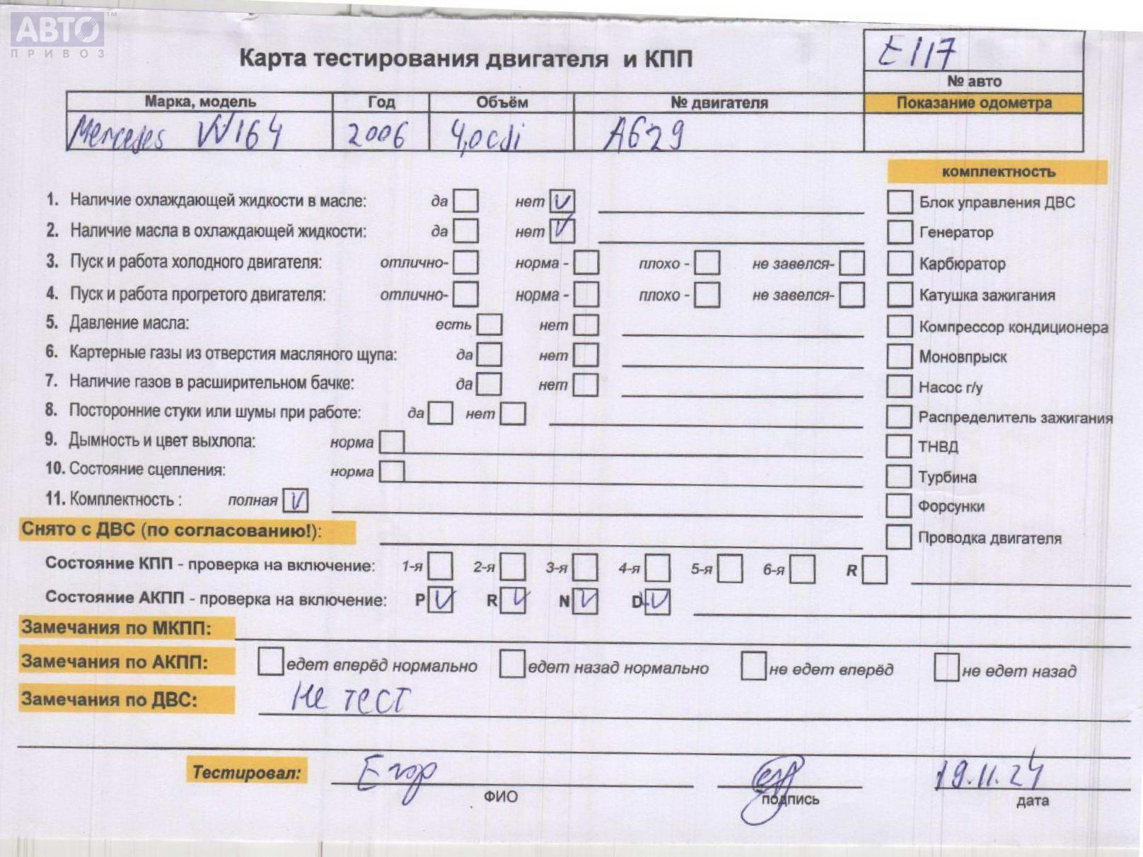 | Марка / Модель / Год: | Mercedes M-Class ML W164 (2005-2011) 2006 |