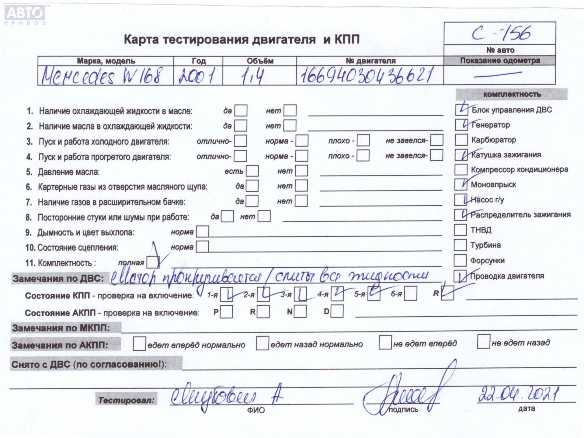 | Марка / Модель / Год: | Mercedes A-Class W168 (1997-2004) 2001 |