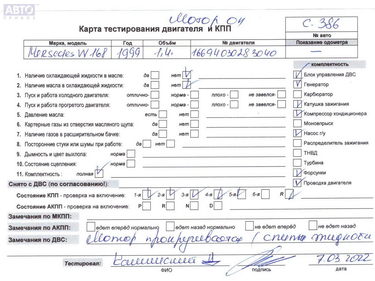 | Автомобиль / VIN: | C0386 WDB1680311J335303 |