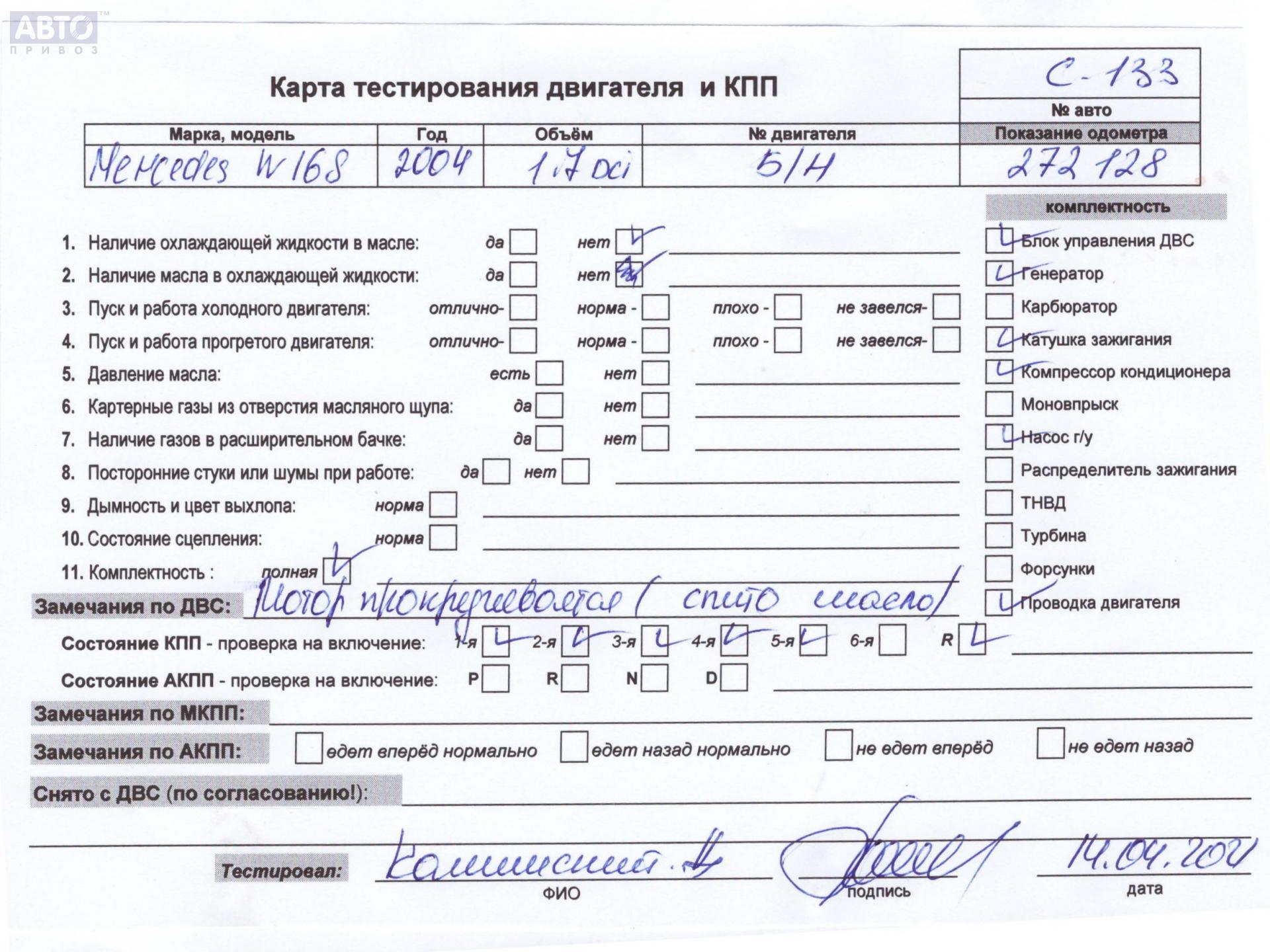 | Марка / Модель / Год: | Mercedes A-Class W168 (1997-2004) 2004 |