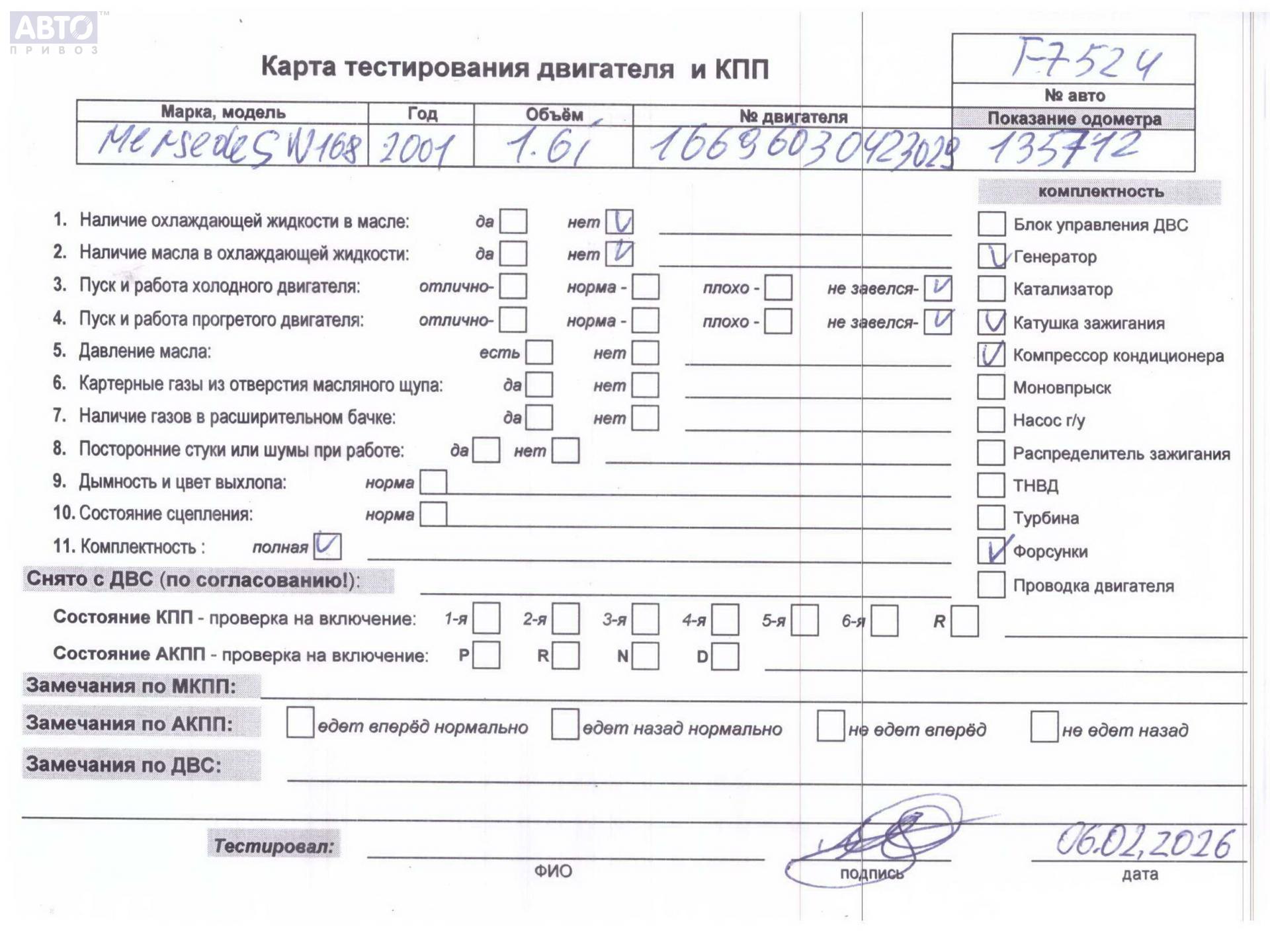 | Автомобиль / VIN: | T7524 WDB1680331J534814 |