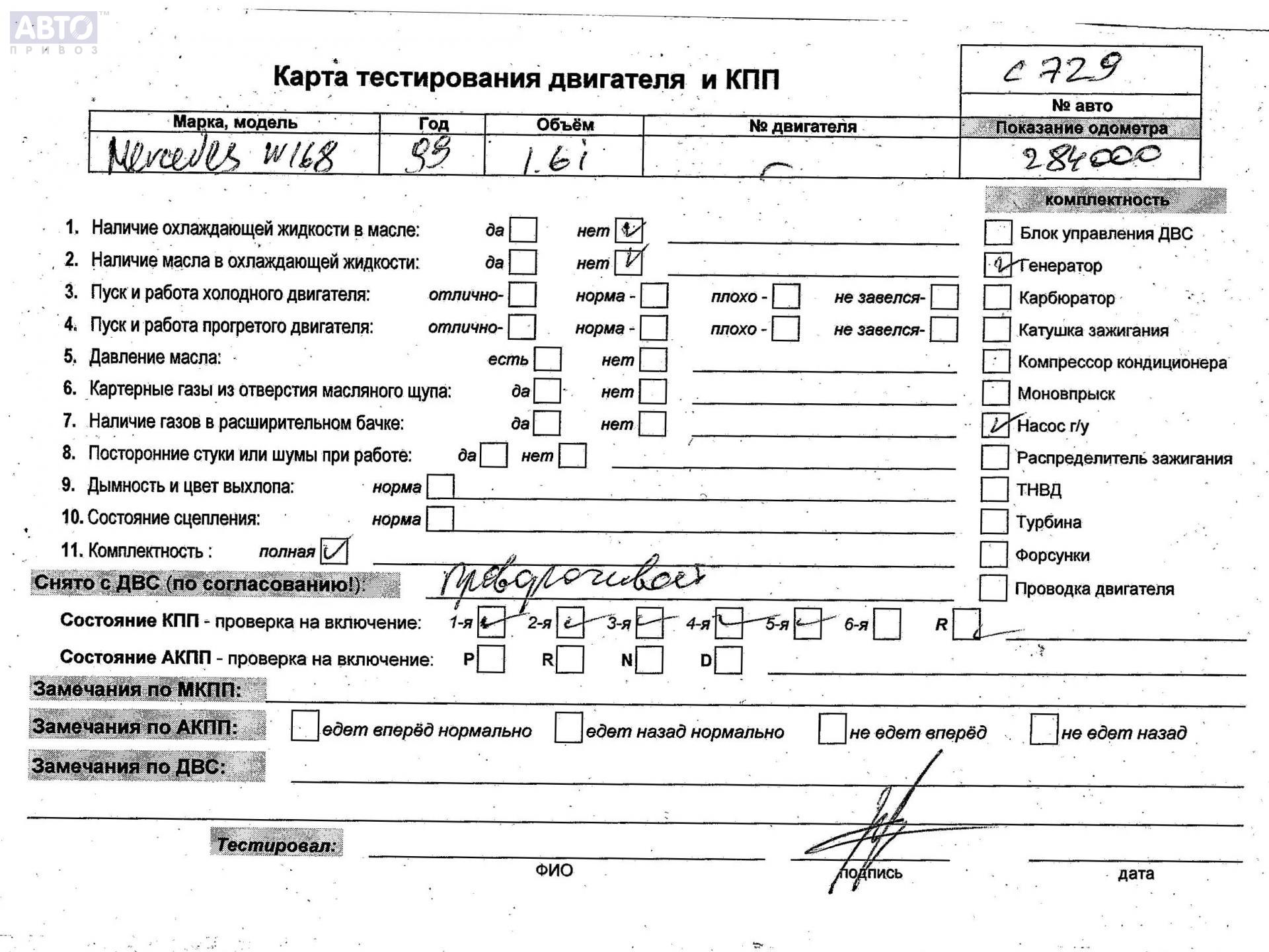 | Автомобиль / VIN: | C0729 WDB1680331J266280 |