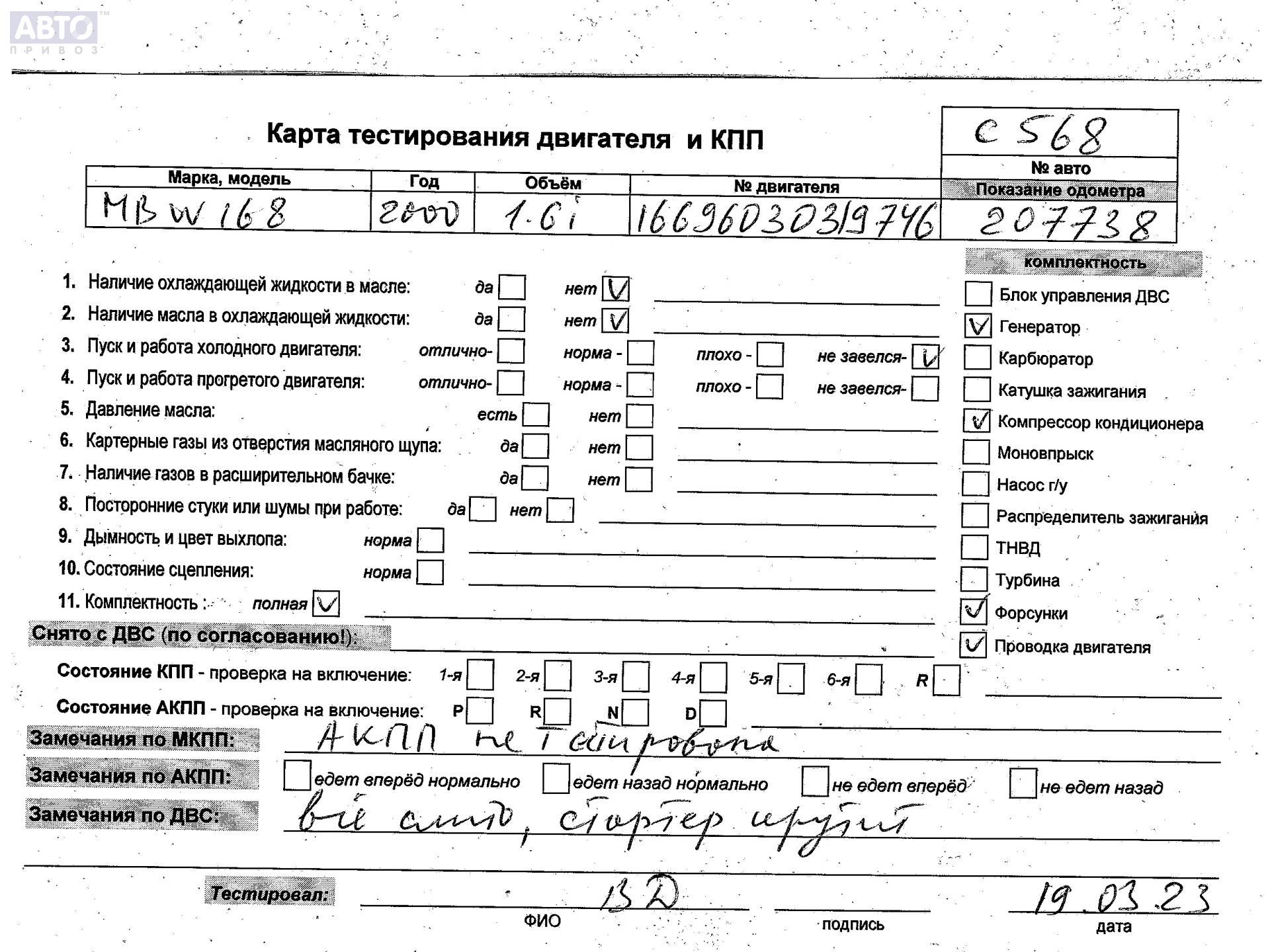 | Автомобиль / VIN: | C0568 WDB1680331J385858 |