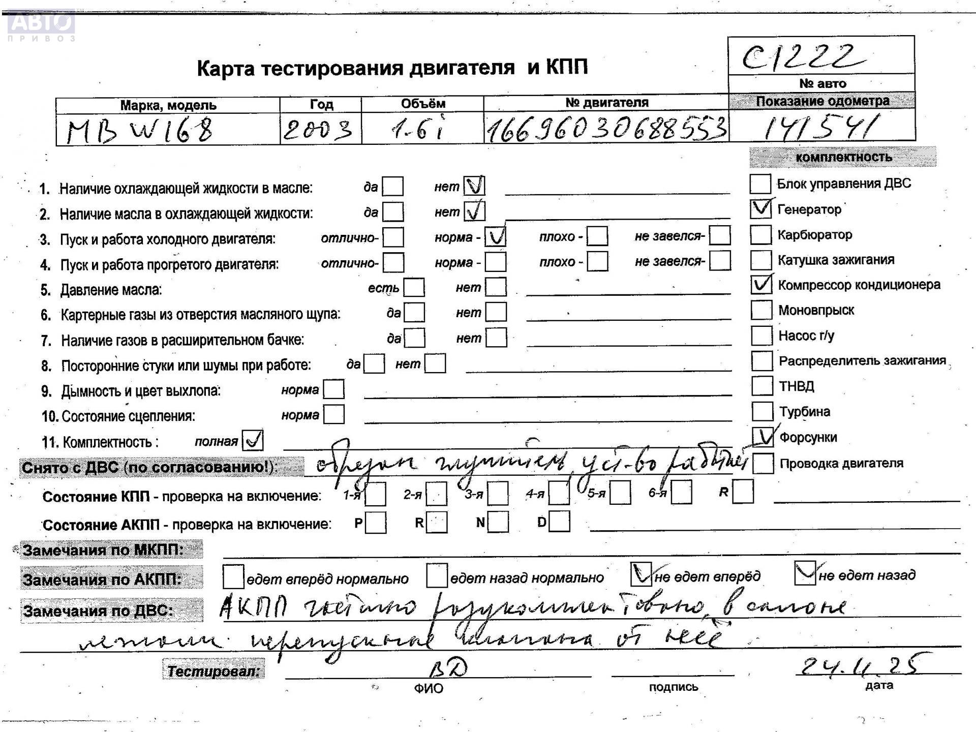 | Марка / Модель / Год: | Mercedes A-Class W168 (1997-2004) 2003 |