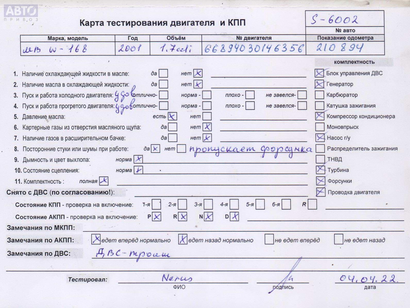 | Марка / Модель / Год: | Mercedes A-Class W168 (1997-2004) 2001 |