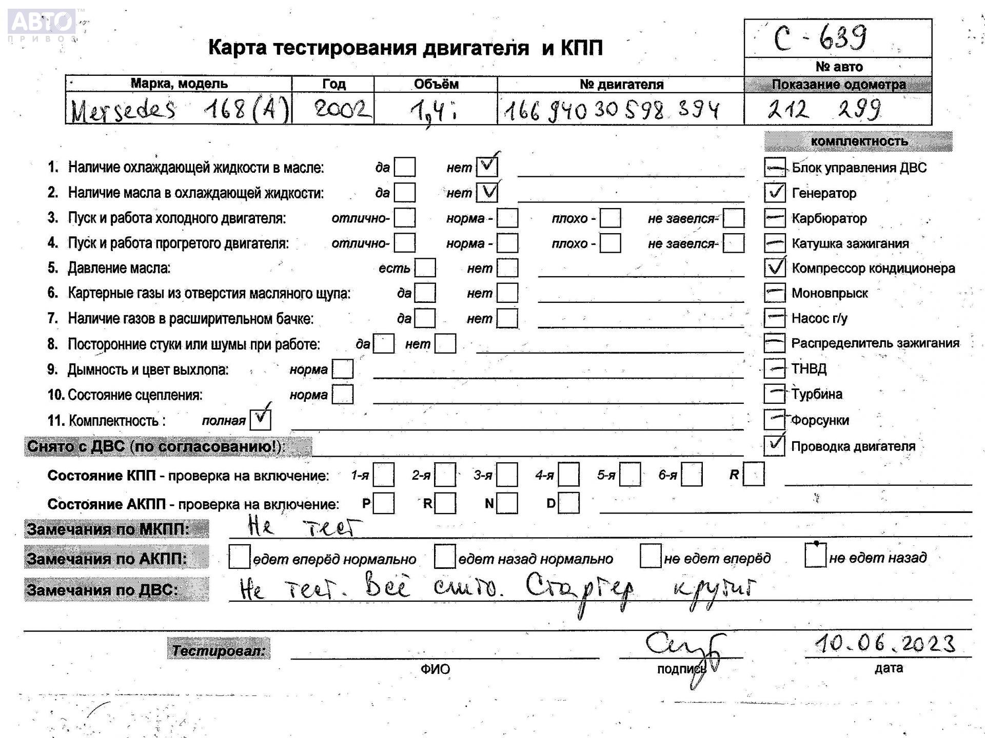| Автомобиль / VIN: | C0639 WDB1680311J814075 |