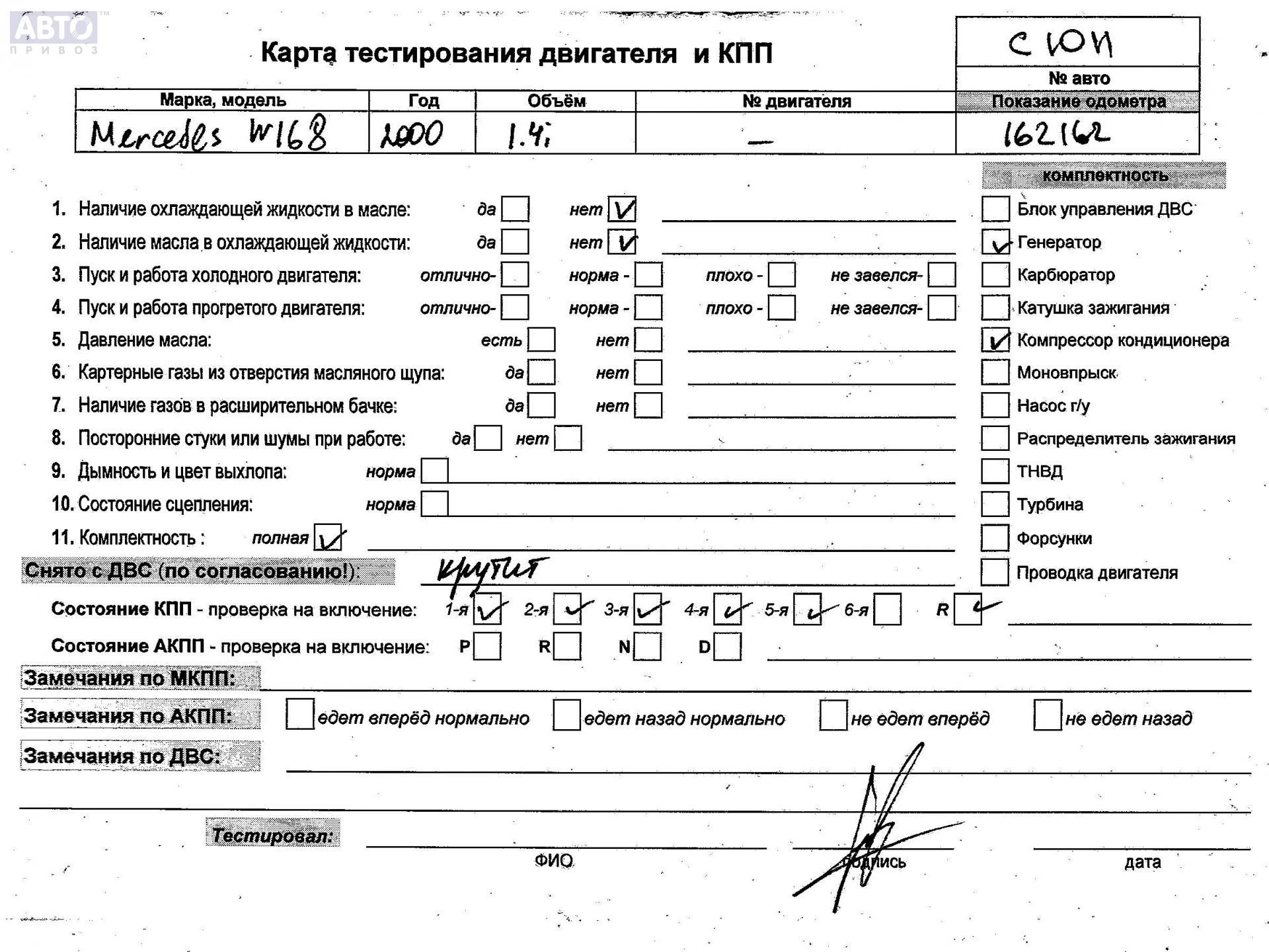 | Марка / Модель / Год: | Mercedes A-Class W168 (1997-2004) 2000 |