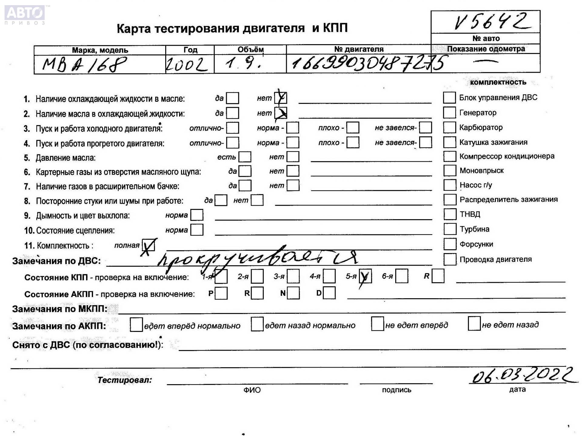 | Автомобиль / VIN: | V5642 WDB1681322J634841 |