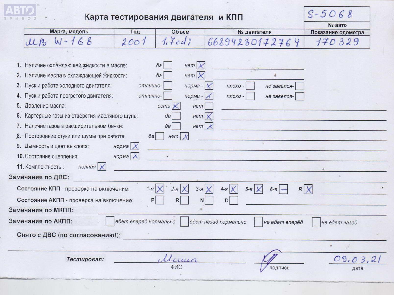 | Марка / Модель / Год: | Mercedes A-Class W168 (1997-2004) 2001 |