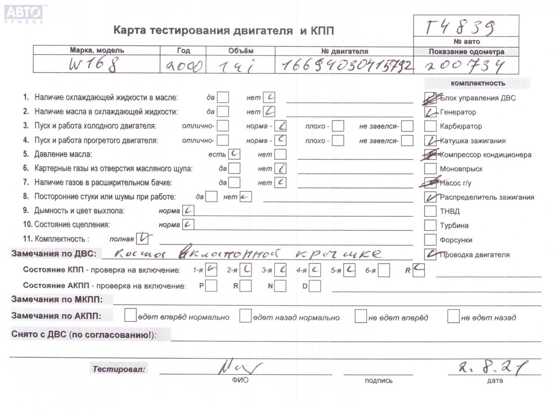 | Марка / Модель / Год: | Mercedes A-Class W168 (1997-2004) 2000 |