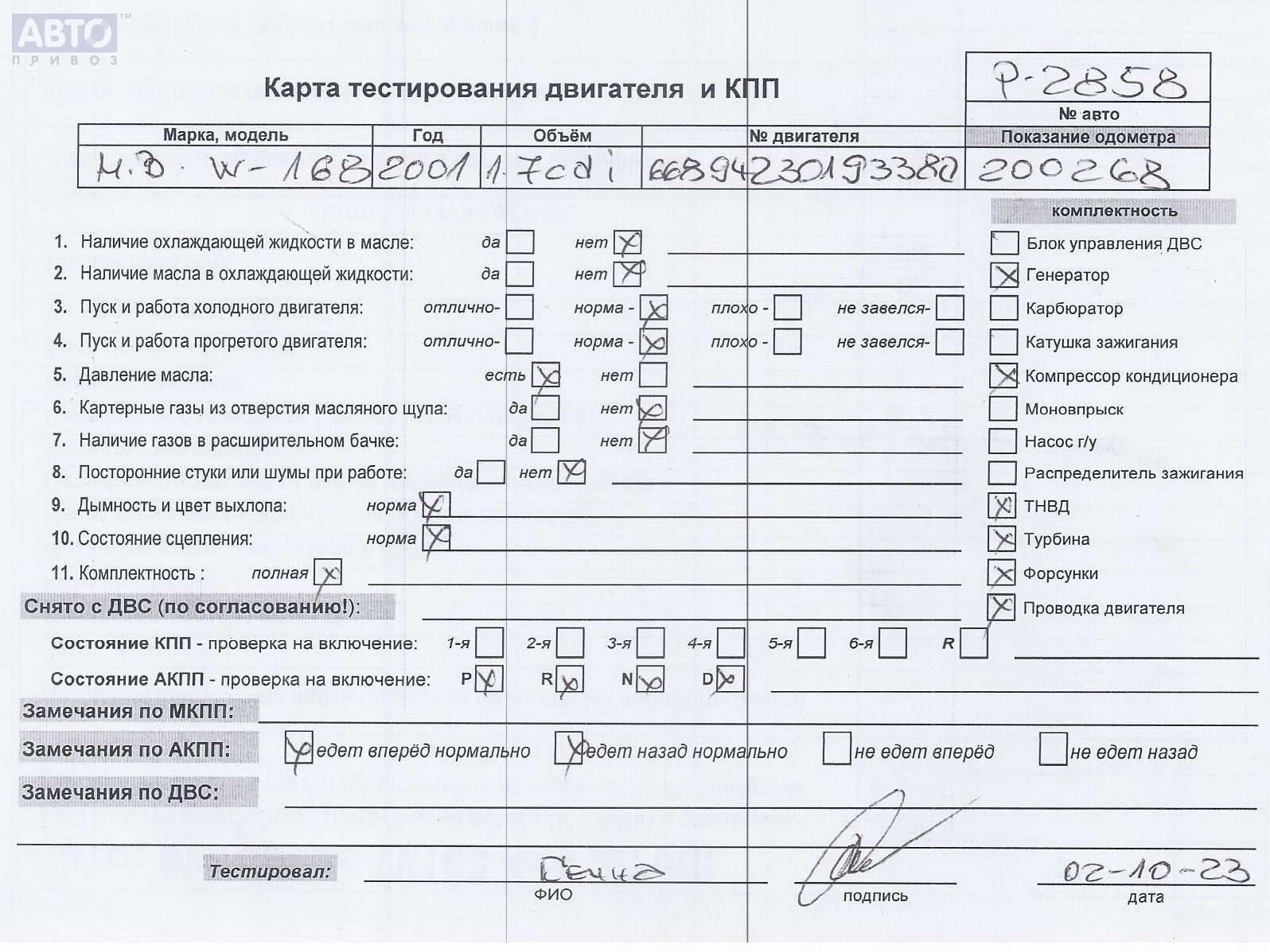 | Автомобиль / VIN: | P2858 WDB1681091J645707 |