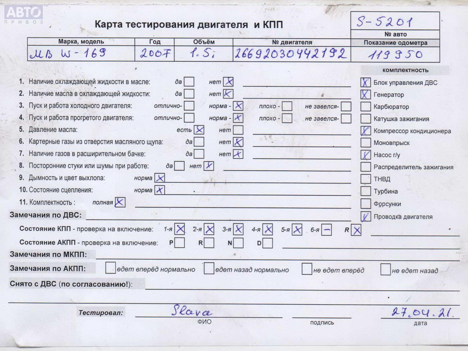 | Марка / Модель / Год: | Mercedes A-Class W169 (2004-2012) 2007 |