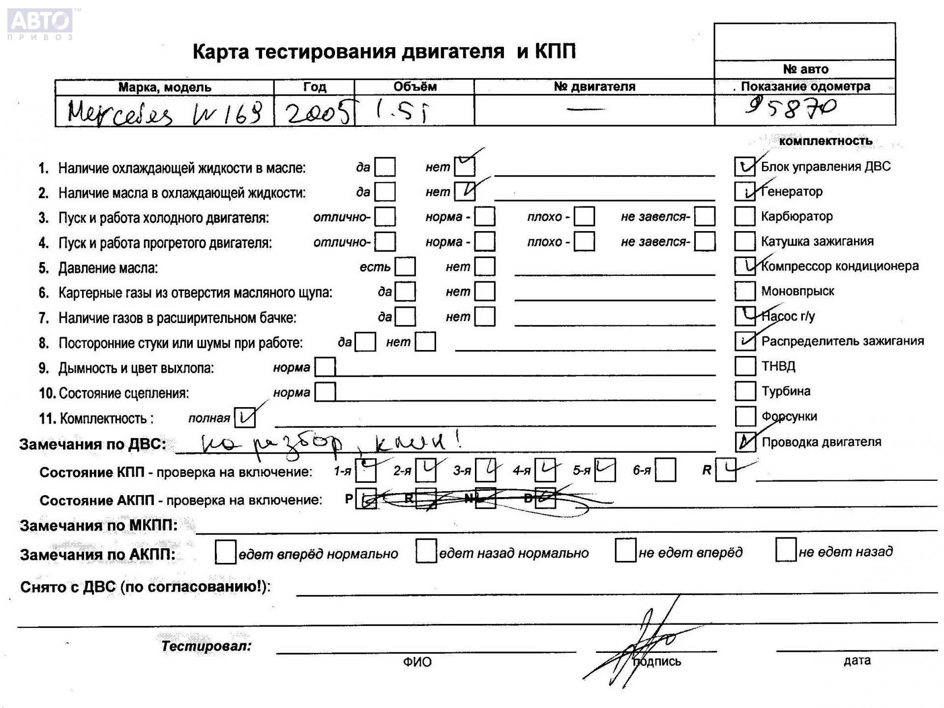 | Марка / Модель / Год: | Mercedes A-Class W169 (2004-2012) 2005 |