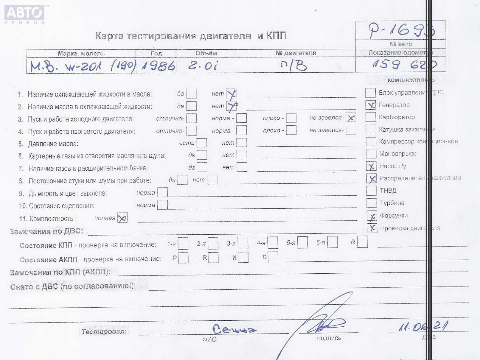 | Марка / Модель / Год: | Mercedes 190 W201 (1982-1993) 1986 |