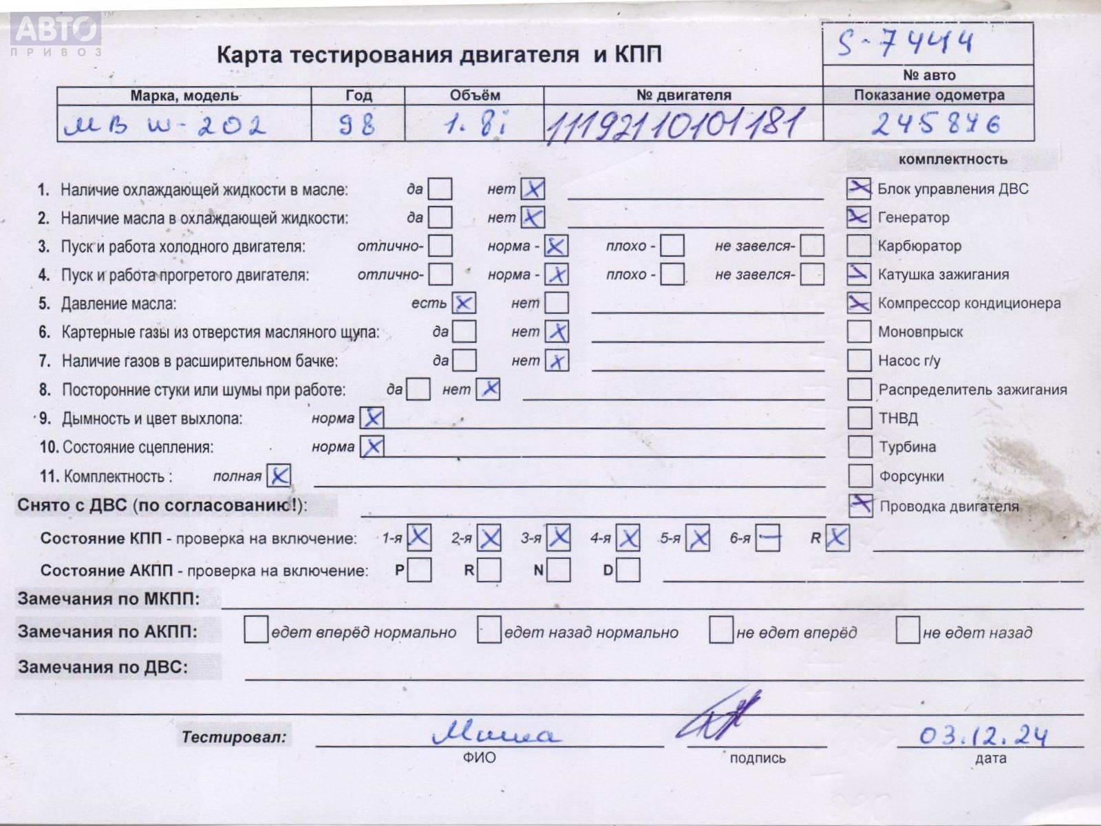 | Автомобиль / VIN: | S7444 WDB2020781F731854 |