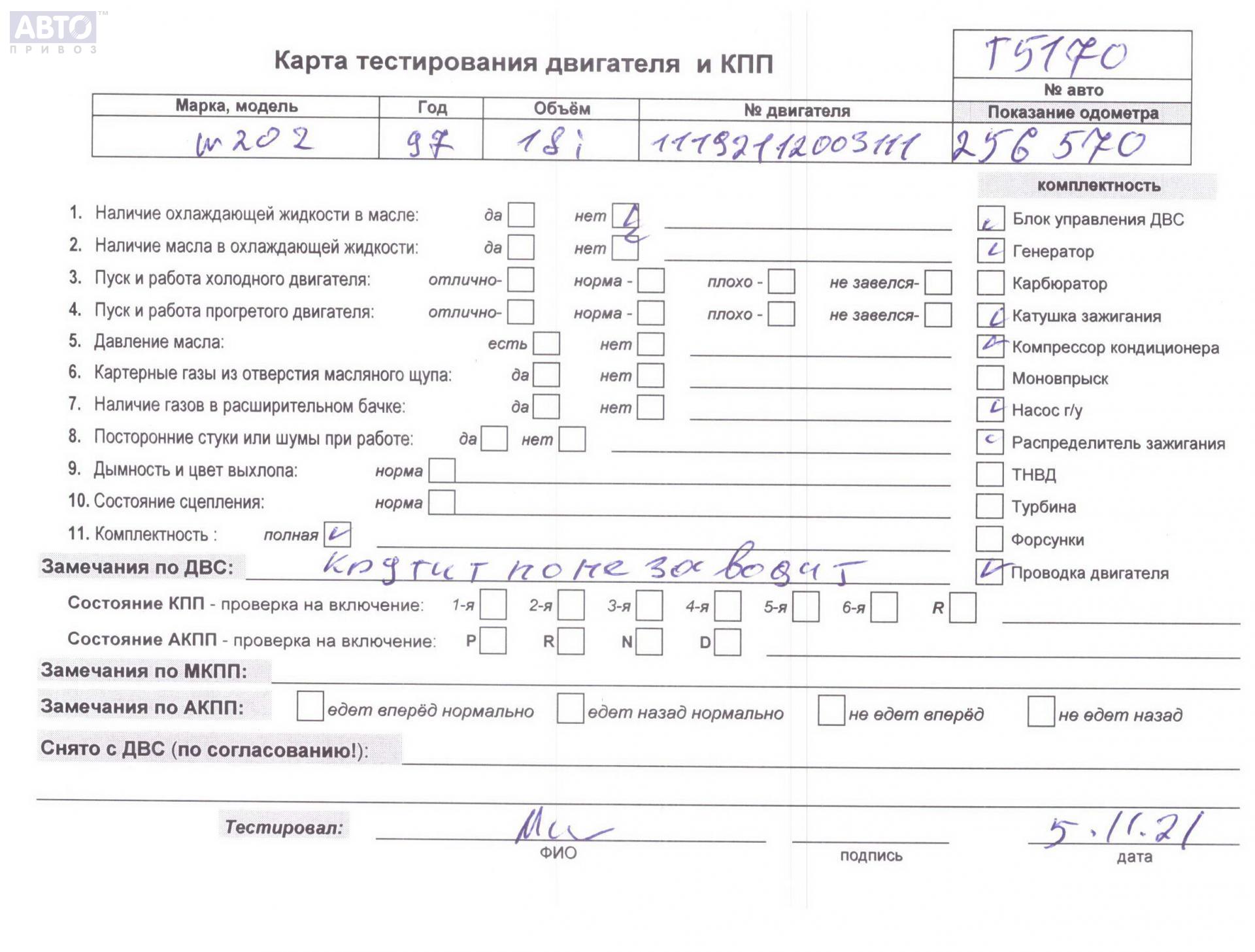 | Марка / Модель / Год: | Mercedes C-Class W202 (1993-2000) 1996 |
