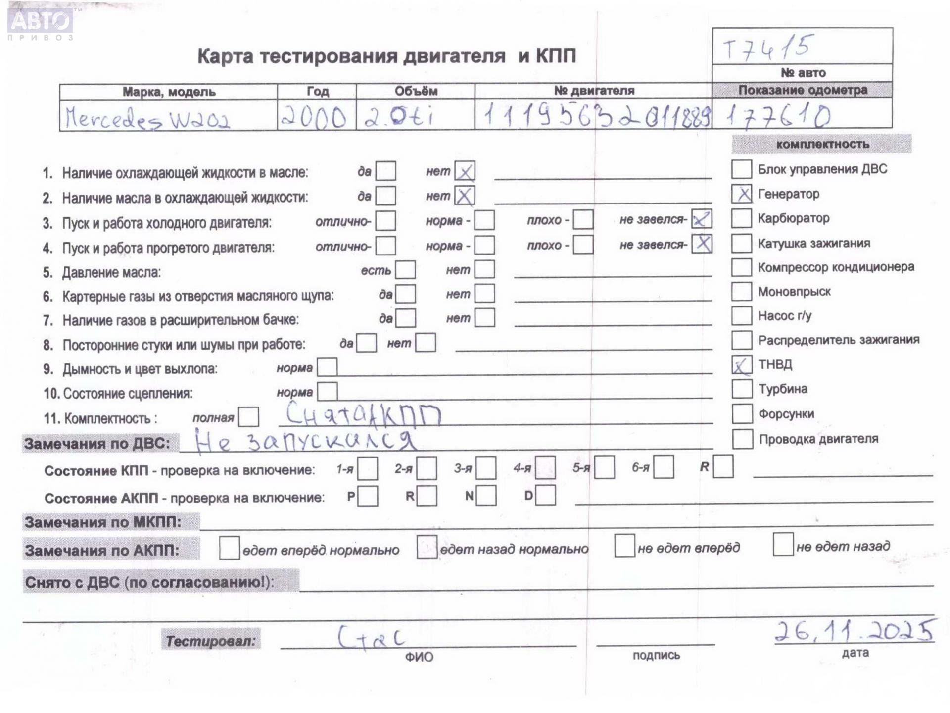 | Автомобиль / VIN: | T7415 WDB2020871F986991 |