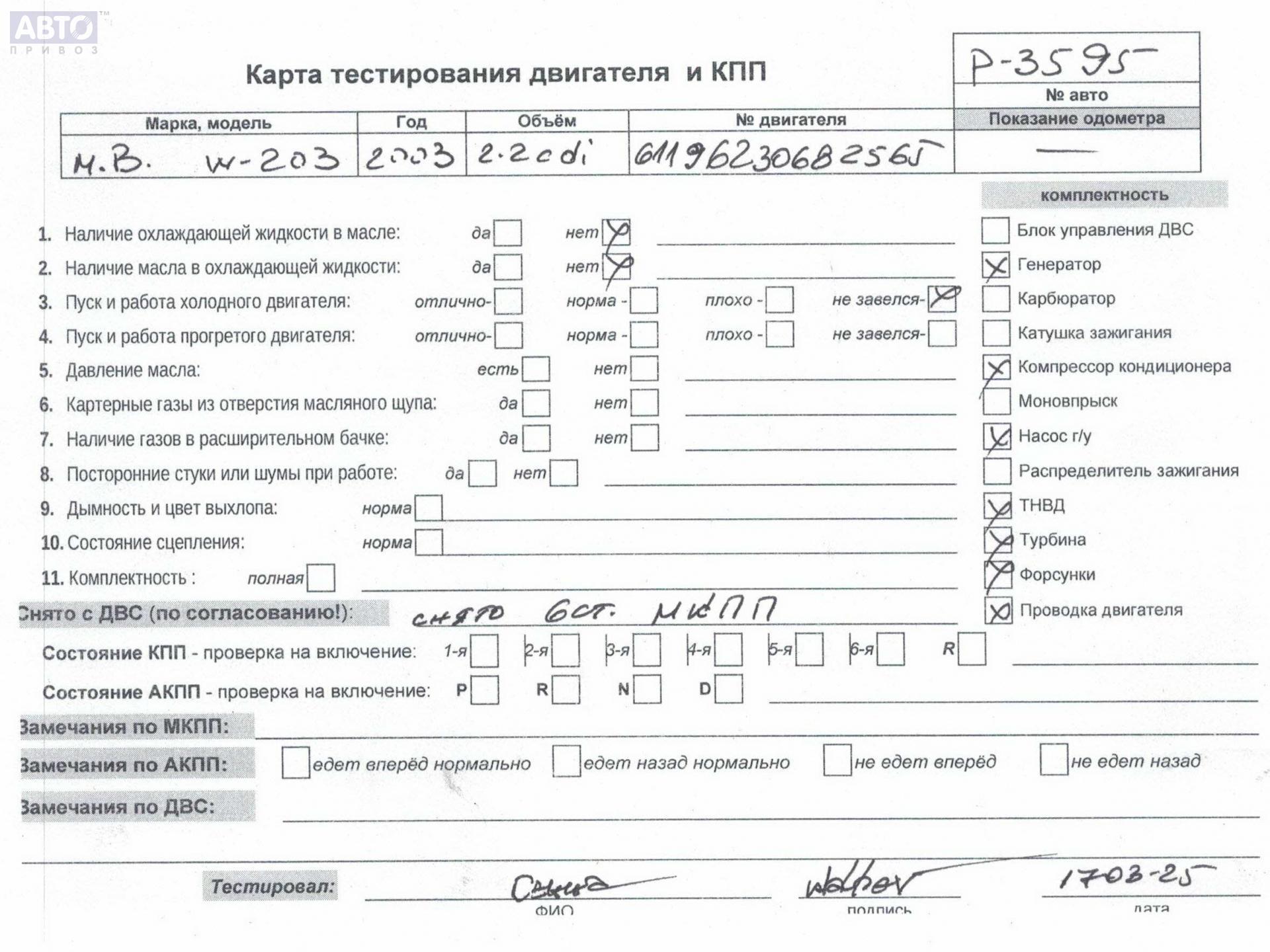 | Автомобиль / VIN: | P3595 WDB2032061F440975 |
