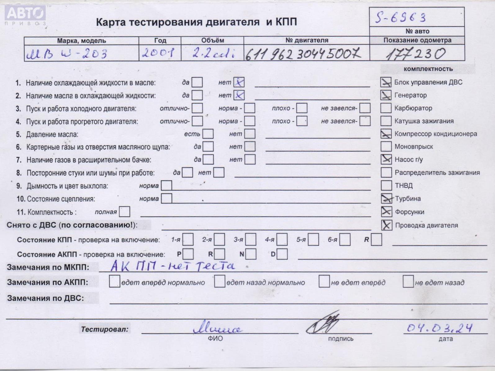 | Автомобиль / VIN: | S6963 WDB2030061A232938 |