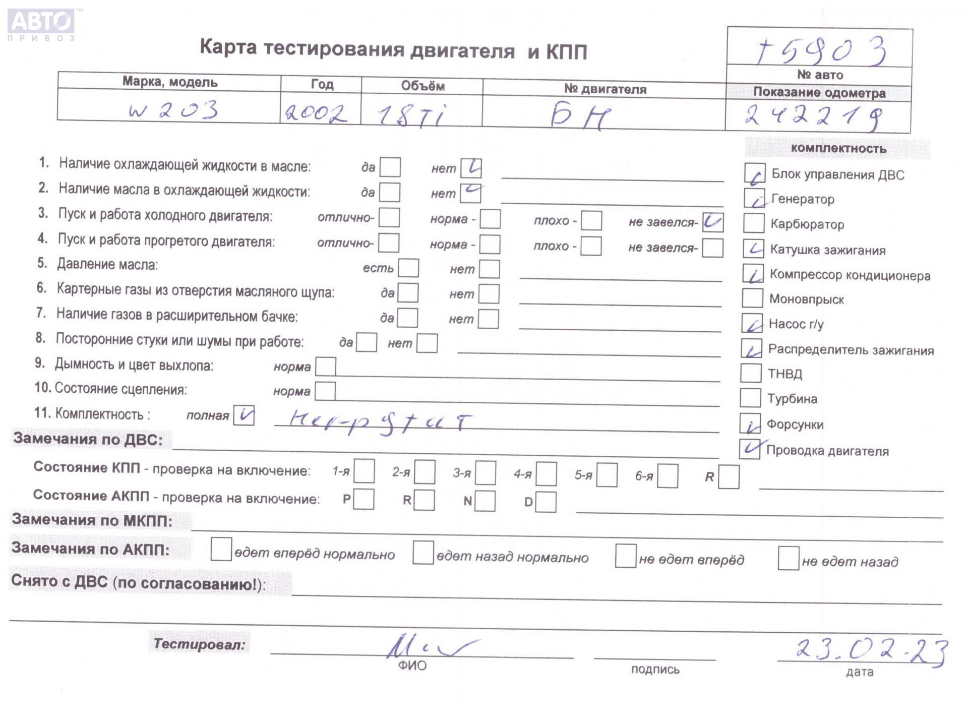 | Марка / Модель / Год: | Mercedes C-Class W203 (2000-2006) 2002 |