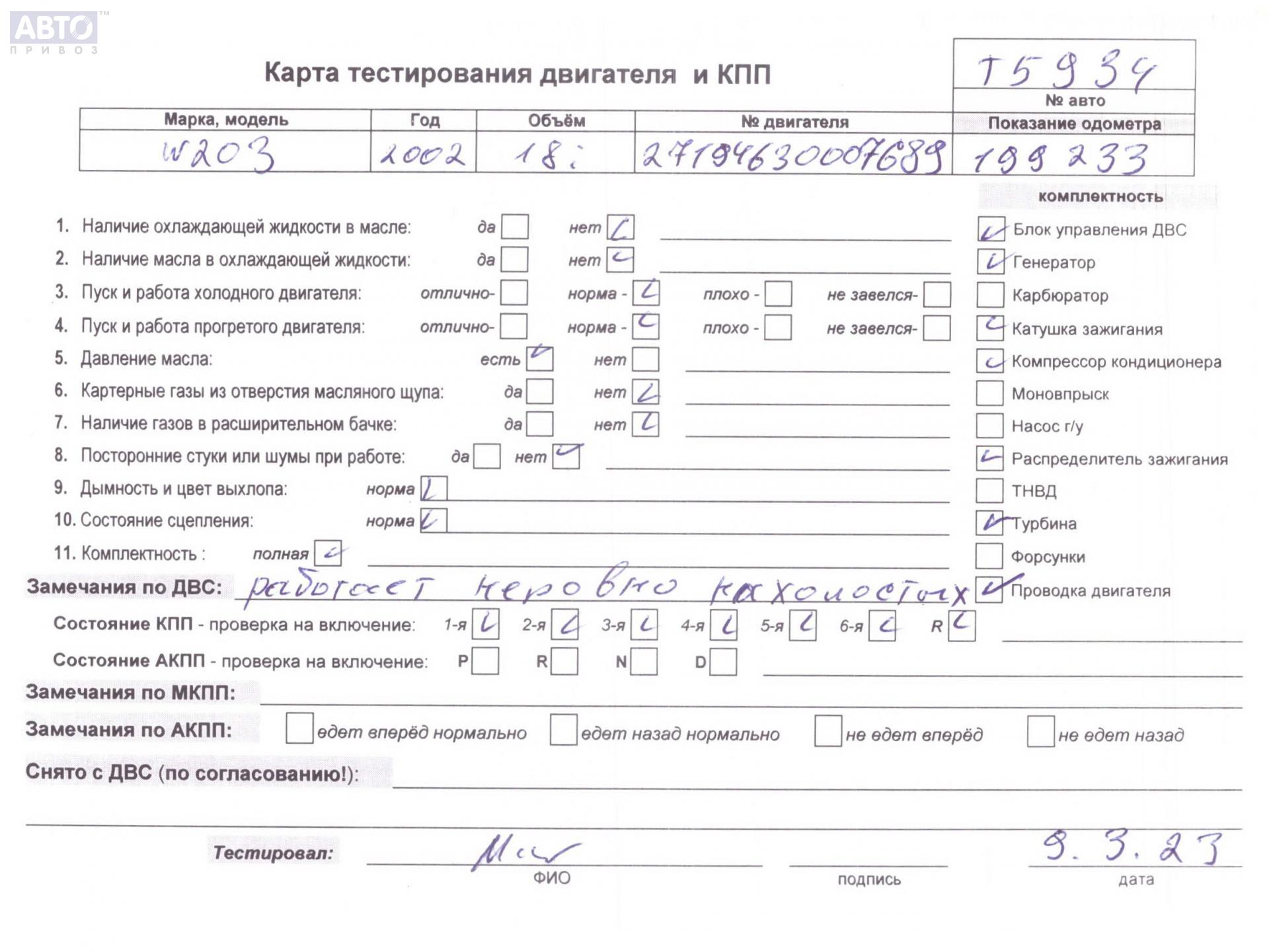 | Марка / Модель / Год: | Mercedes C-Class W203 (2000-2006) 2002 |