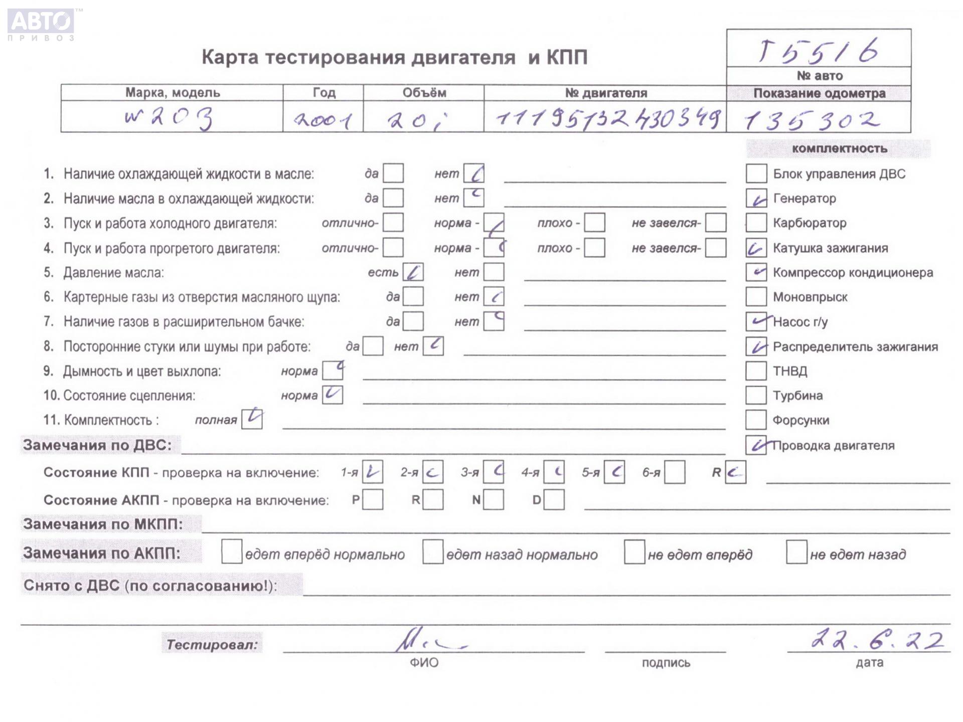 | Автомобиль / VIN: | T5516 WDB2030351A361243 |