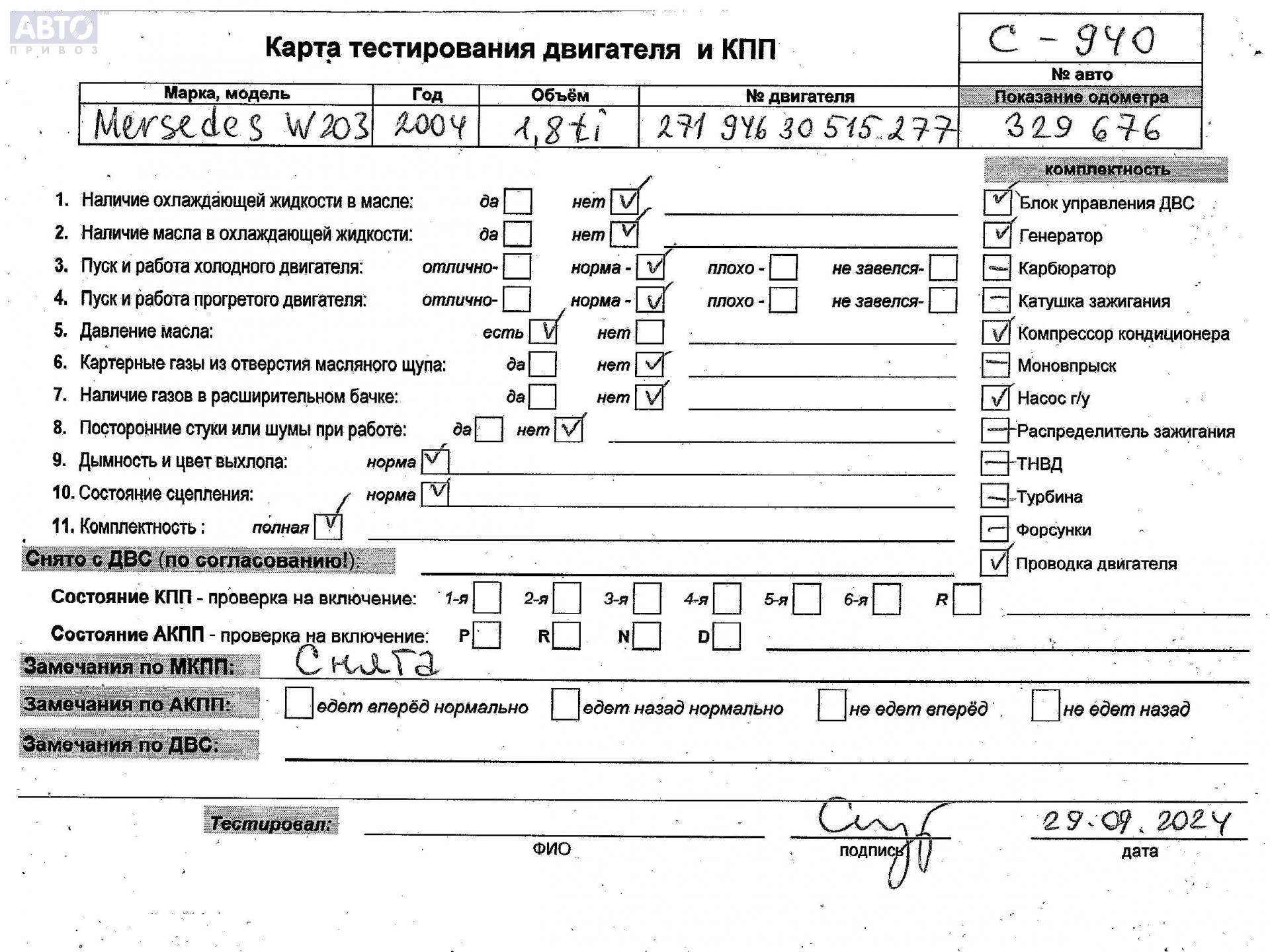| Марка / Модель / Год: | Mercedes C-Class W203 (2000-2006) 2004 |