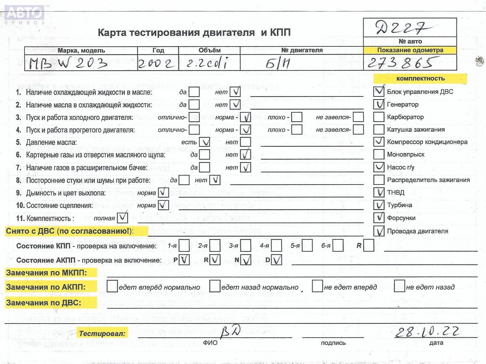 | Автомобиль / VIN: | D0227 WDB2032041F285802 |