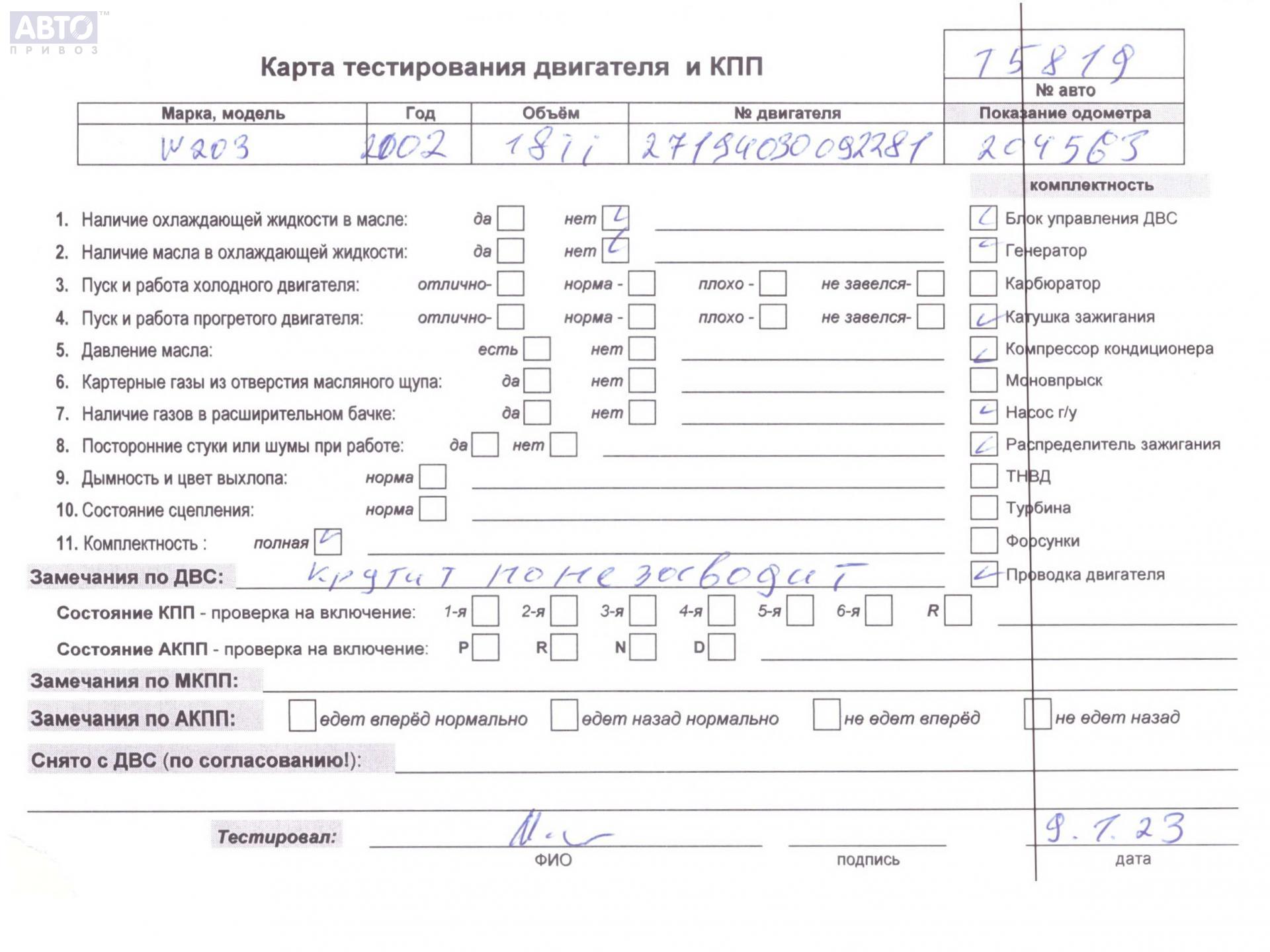 | Марка / Модель / Год: | Mercedes C-Class W203 (2000-2006) 2002 |
