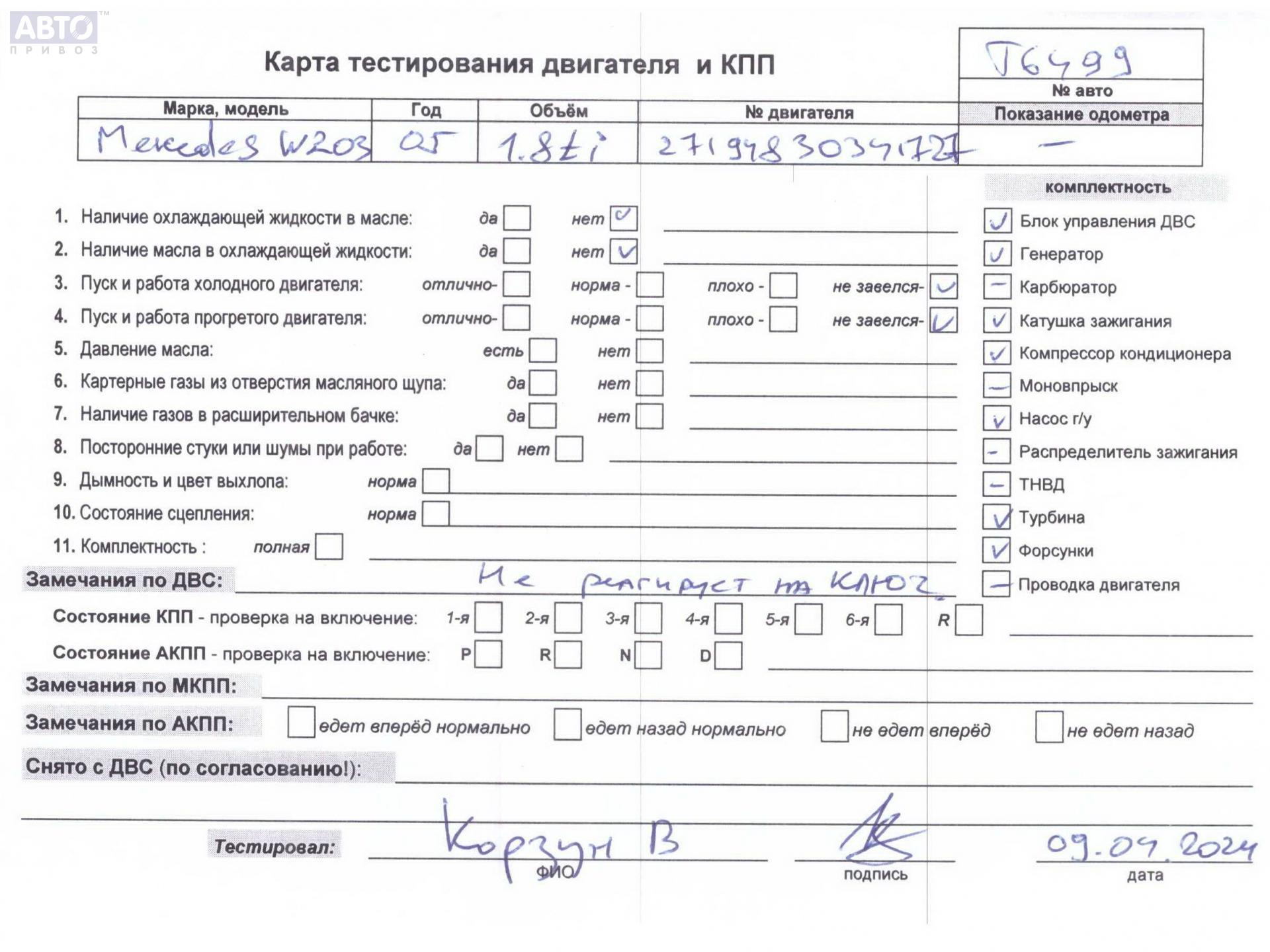 | Марка / Модель / Год: | Mercedes C-Class W203 (2000-2006) 2004 |