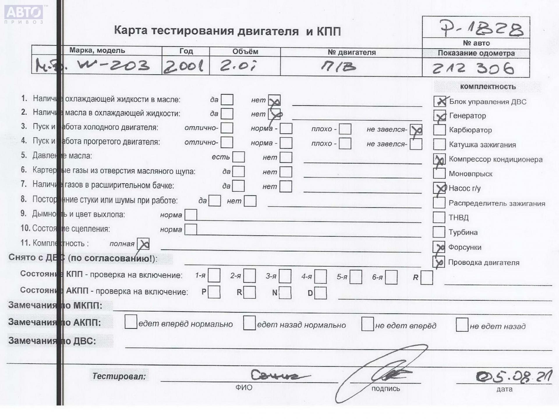 | Марка / Модель / Год: | Mercedes C-Class W203 (2000-2006) 2001 |