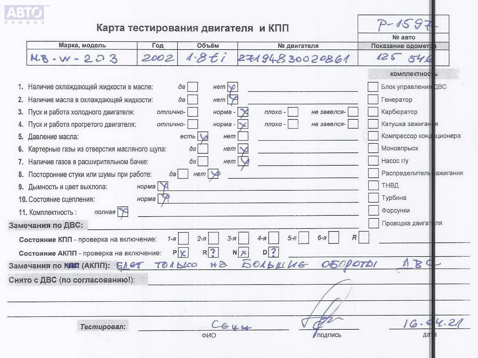 | Марка / Модель / Год: | Mercedes C-Class W203 (2000-2006) 2002 |