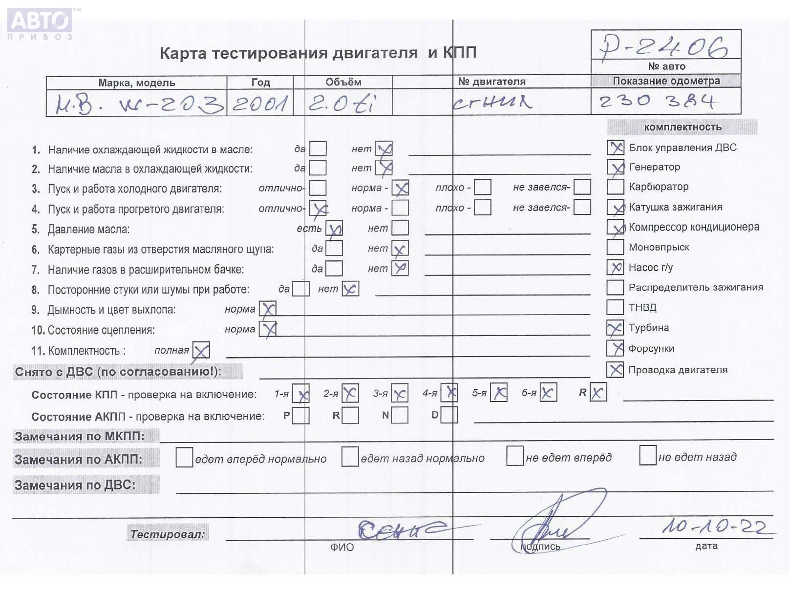 | Автомобиль / VIN: | P2406 WDB2032451F244013 |