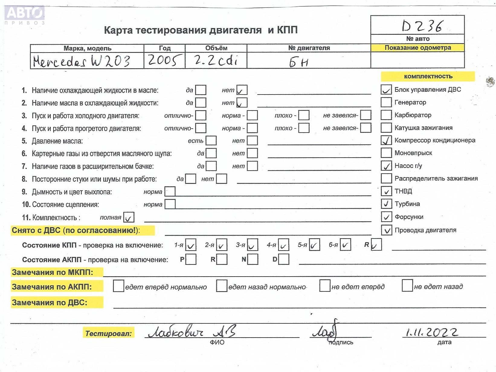 | Марка / Модель / Год: | Mercedes C-Class W203 (2000-2006) 2005 |