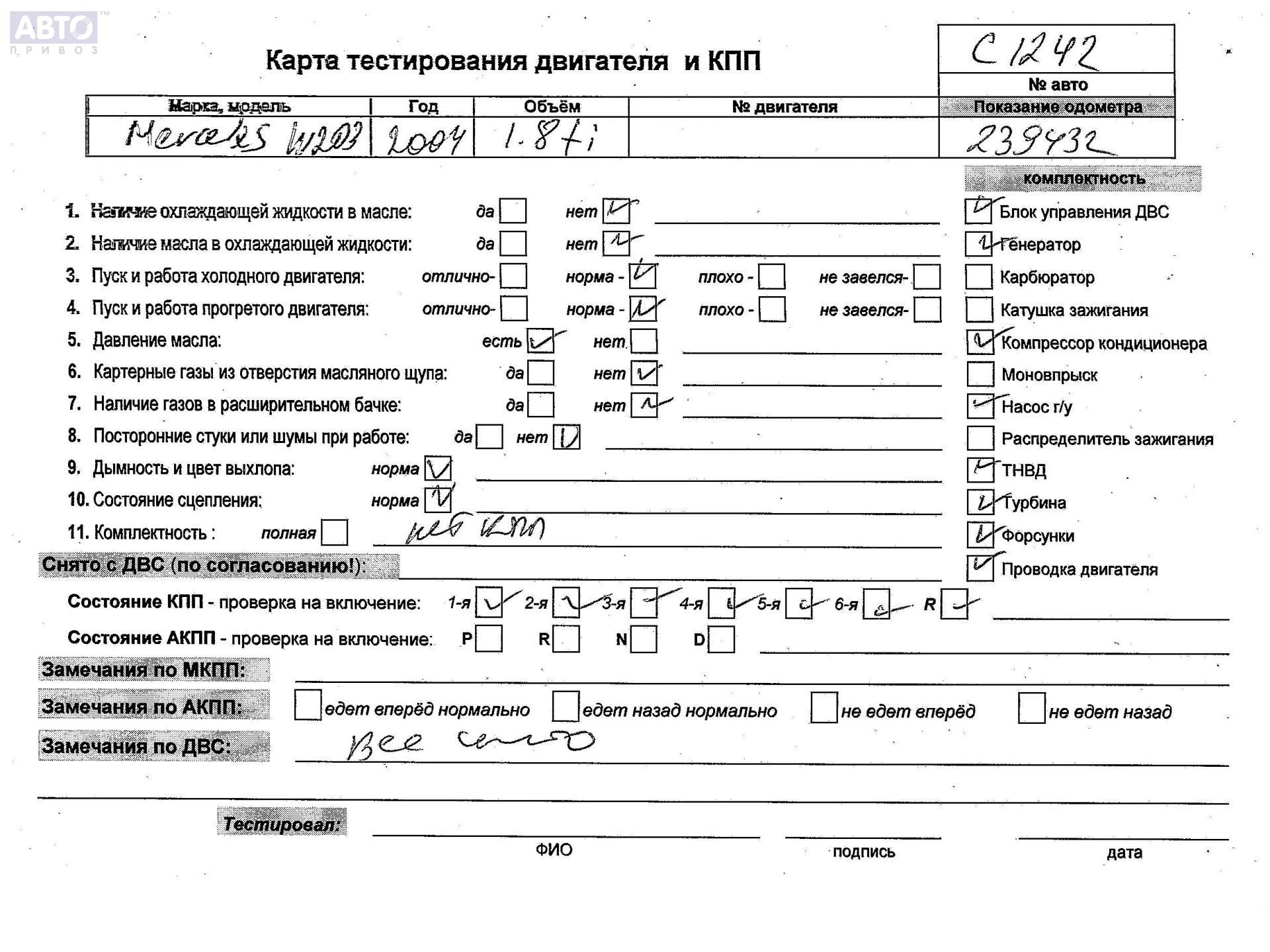 | Марка / Модель / Год: | Mercedes C-Class W203 (2000-2006) 2004 |