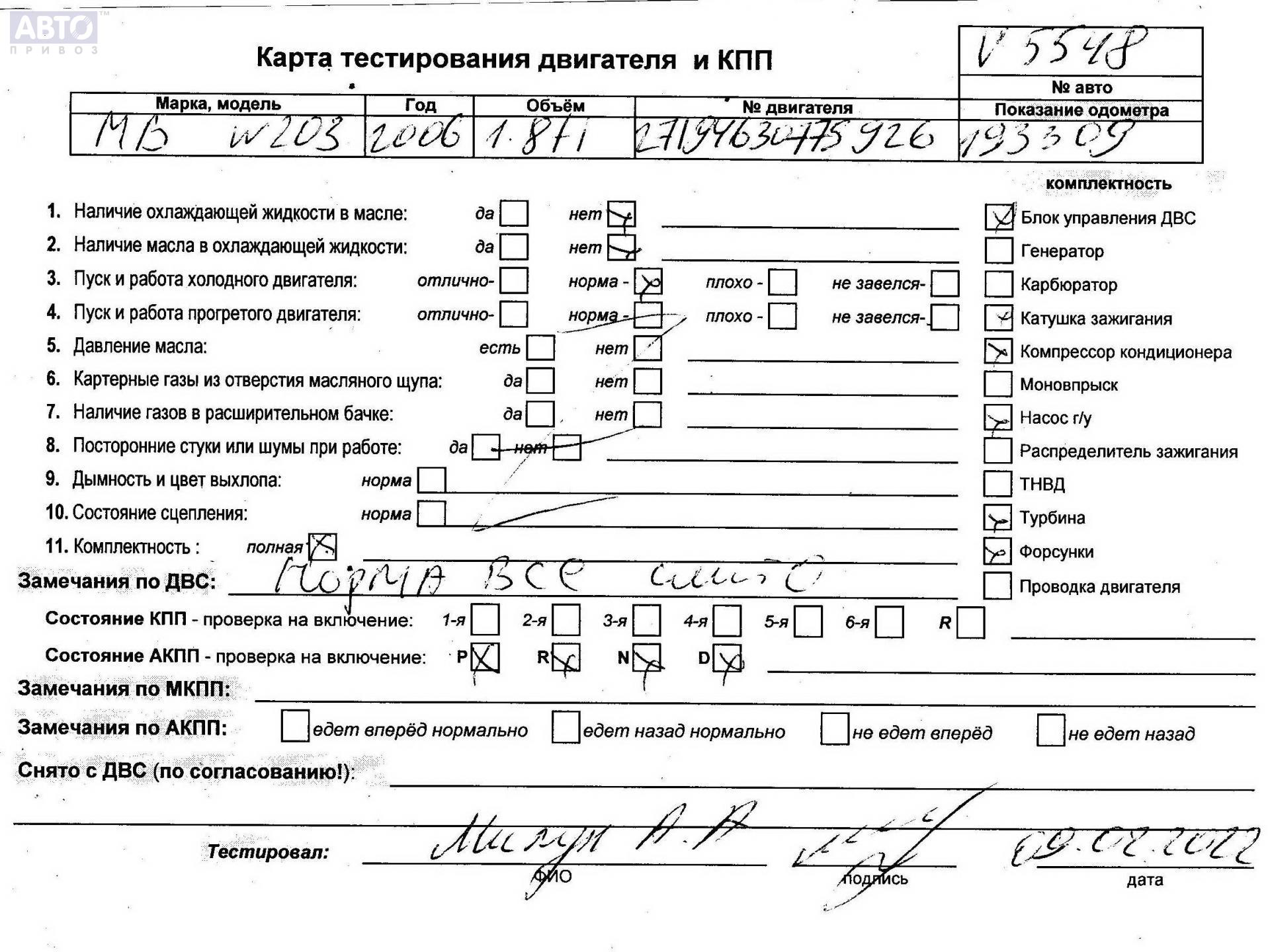 | Марка / Модель / Год: | Mercedes C-Class W203 (2000-2006) 2006 |