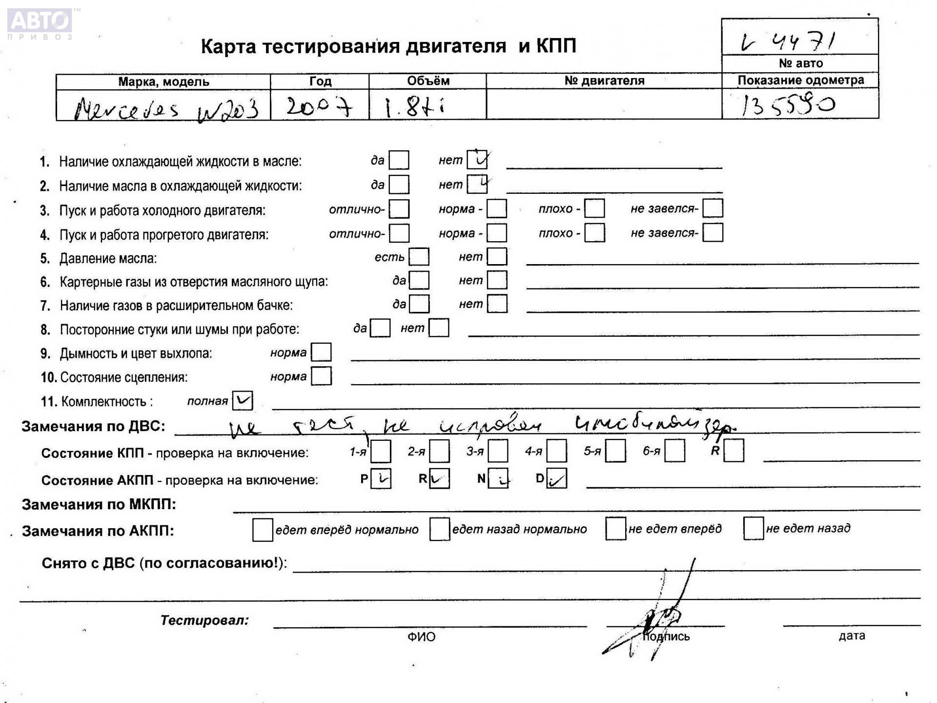 | Марка / Модель / Год: | Mercedes C-Class W203 (2000-2006) 2007 |