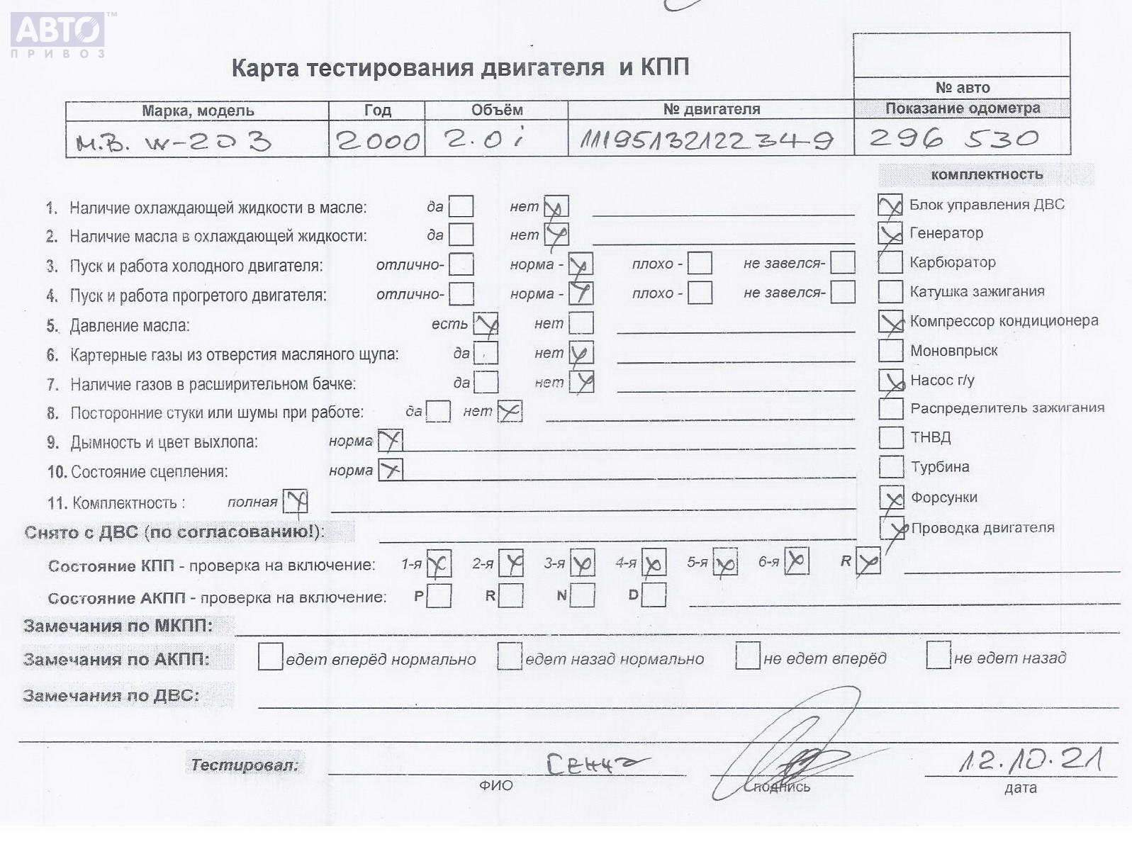 | Марка / Модель / Год: | Mercedes C-Class W203 (2000-2006) 2000 |